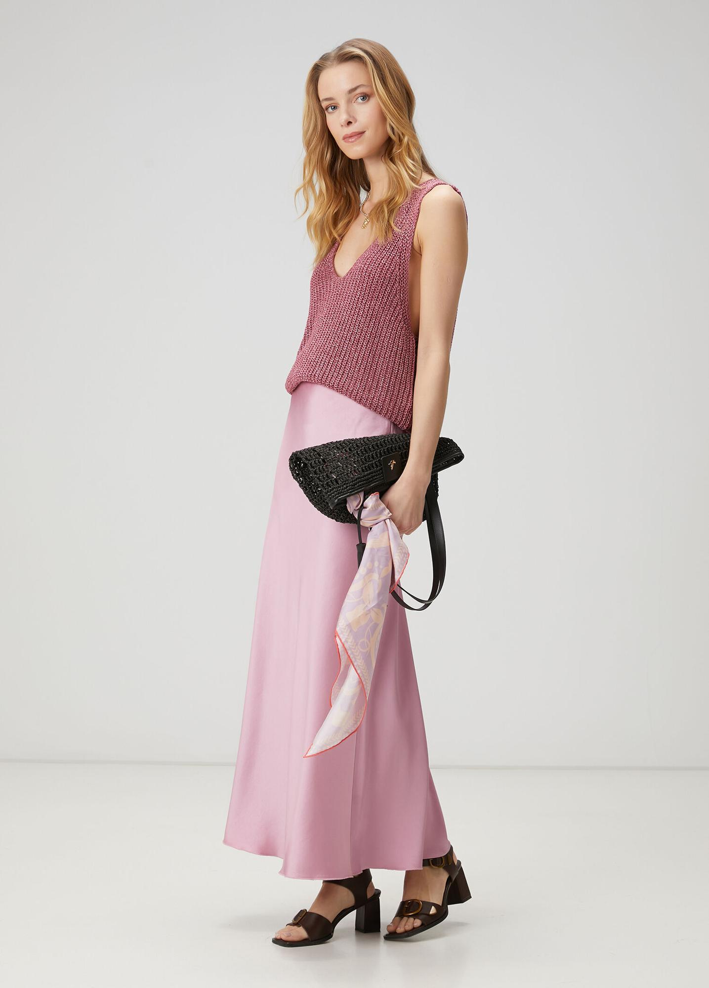 Regular Fit. Yüksek bel, maksi boy, saten evaze etek. Ürün bedeni: 34 / Model ölçüsü: Boy: 174 cm - Göğüs: 81 cm - Bel: 62 cm - Kalça: 91 cm. Yeni sezon hazır giyim alışverişlerinizde ücretsiz tadilat yapılmaktadır