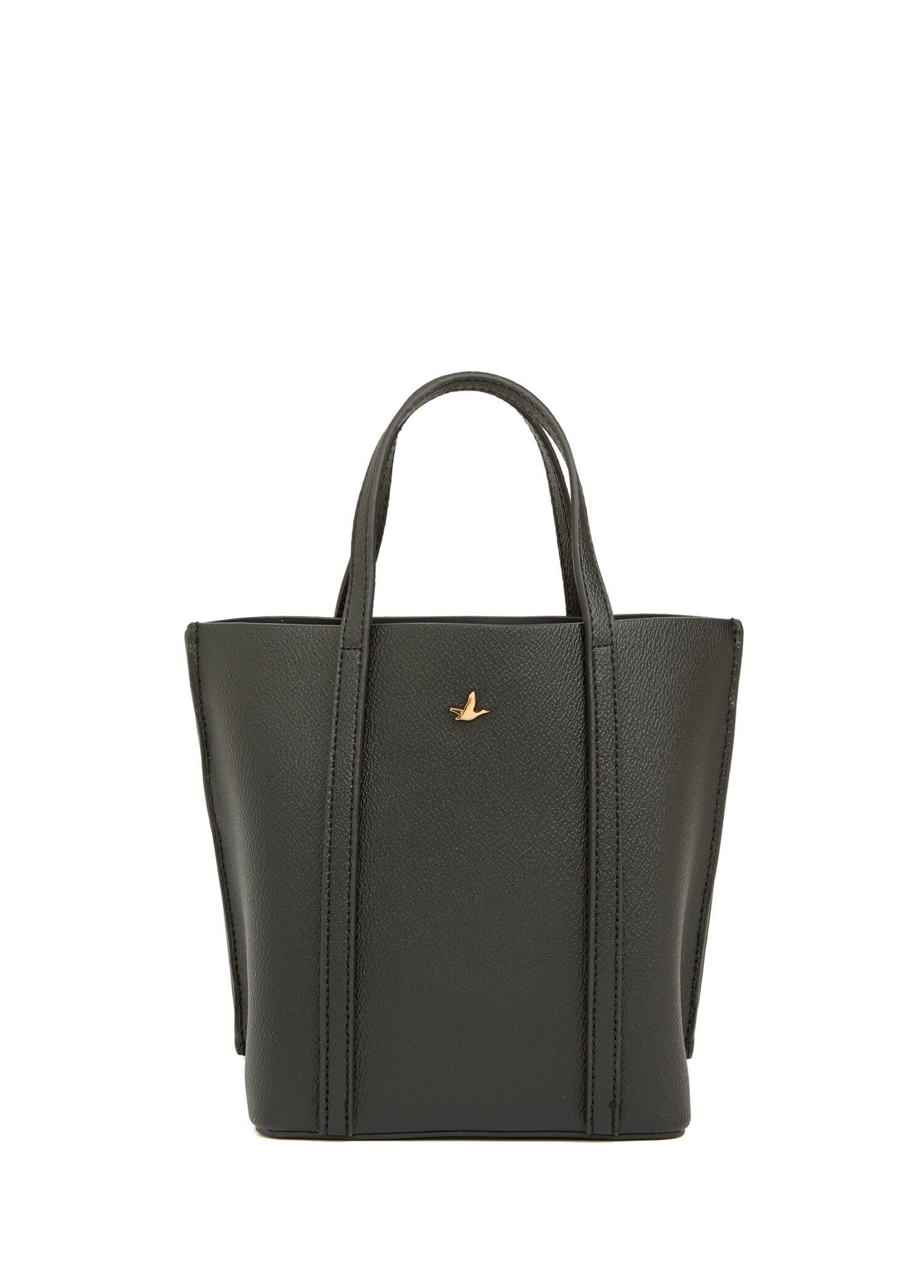 Omuz askılı, fermuar kapatmalı, düz renk alışveriş çantası. Logo detaylı, 1 iç cepli. 17x20 cm