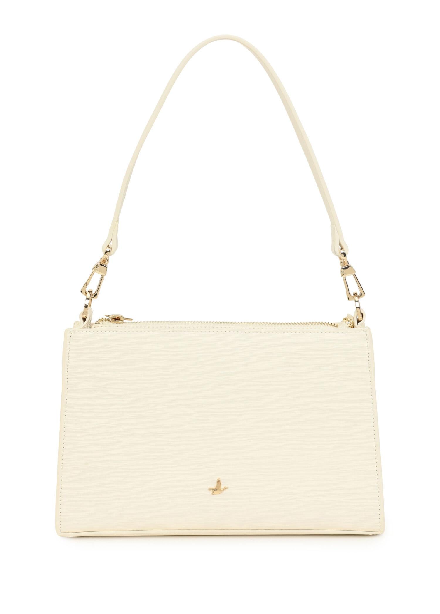 Omuz askılı, fermuar kapatmalı, düz renk çanta. Logo detaylı, 1 iç cepli. 25x17 cm