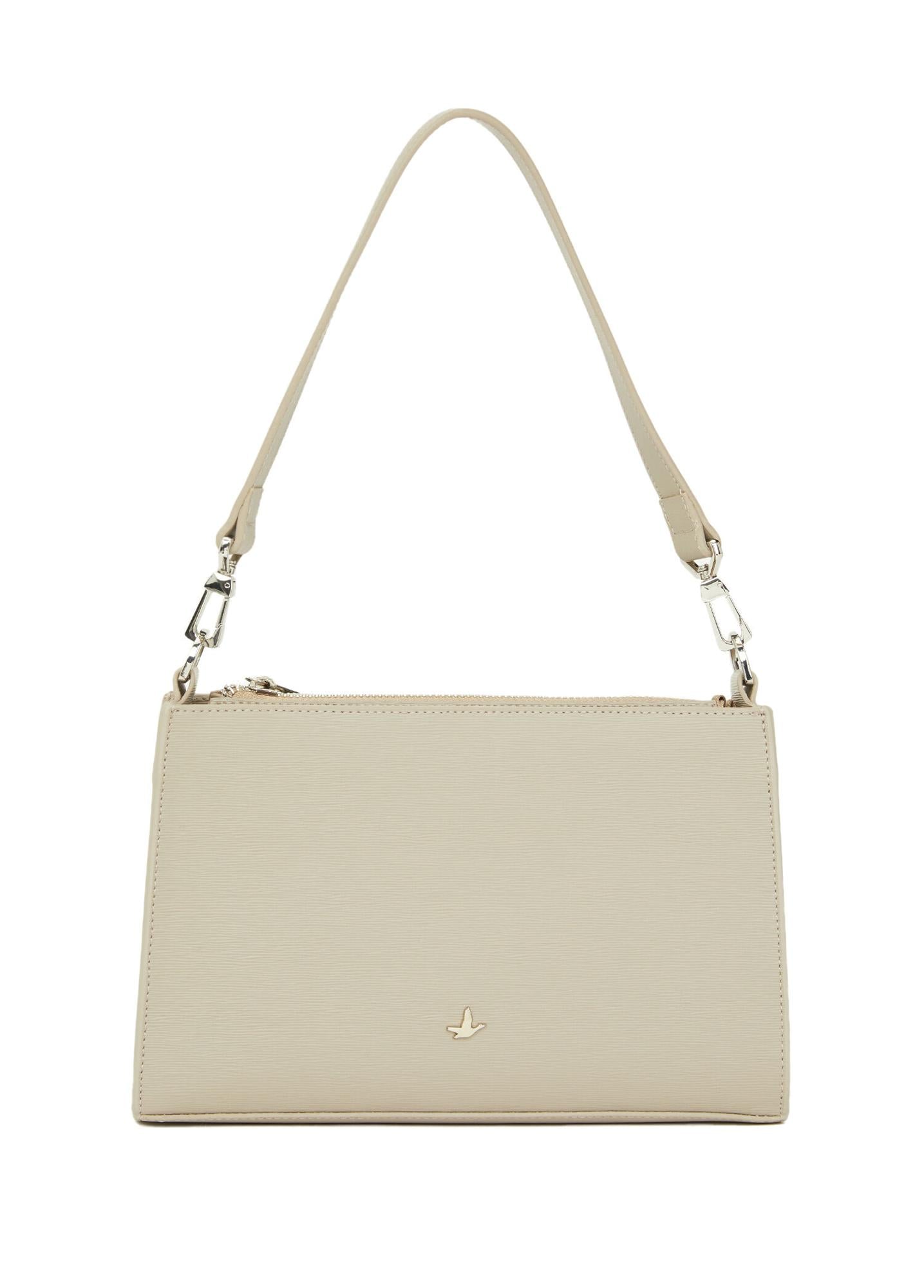 Omuz askılı, fermuar kapatmalı, düz renk çanta. Logo detaylı, 1 iç cepli. 26x17 cm