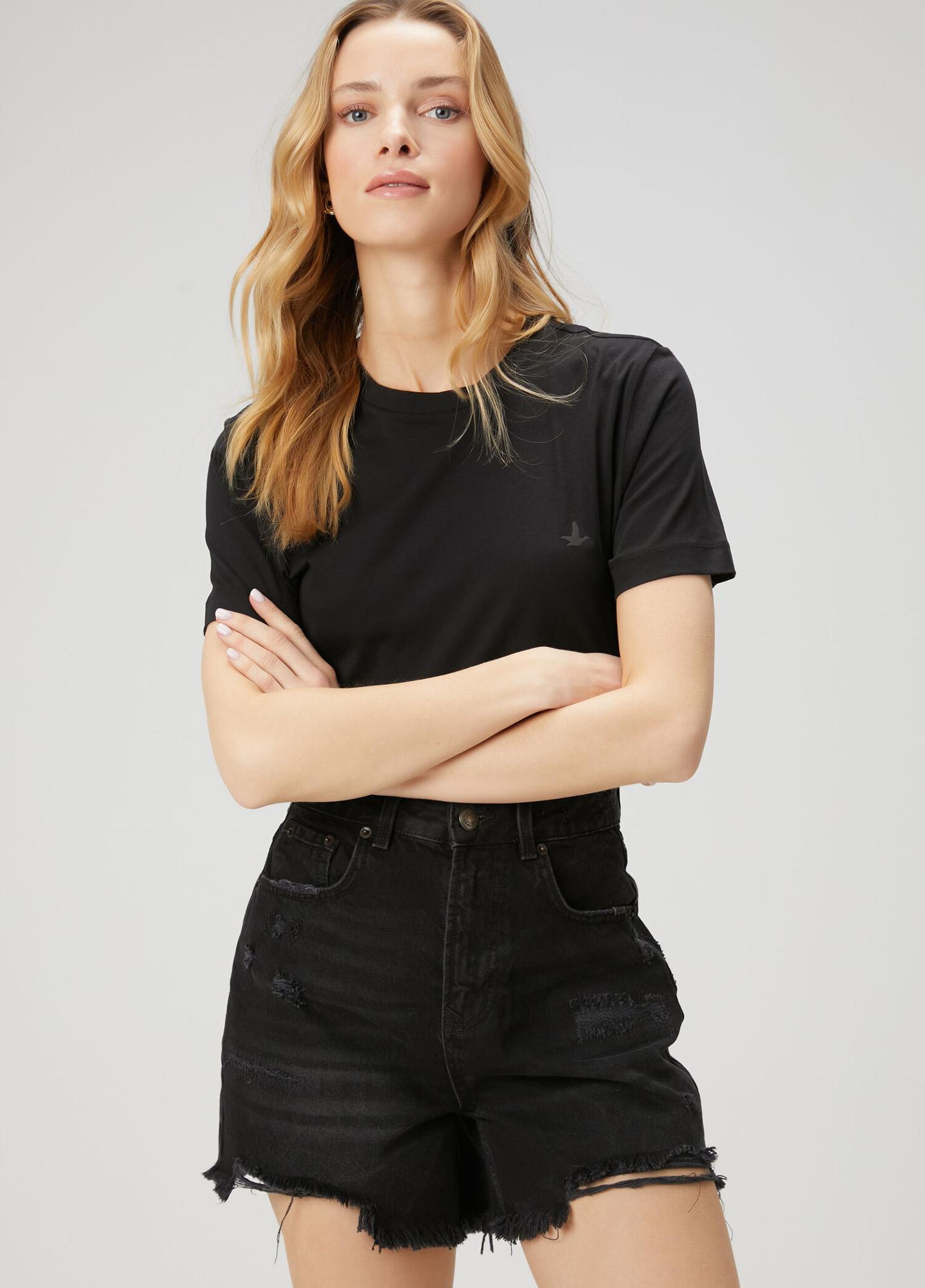 Beymen Club Kadın Siyah Logo Detaylı Basic T-shirt
