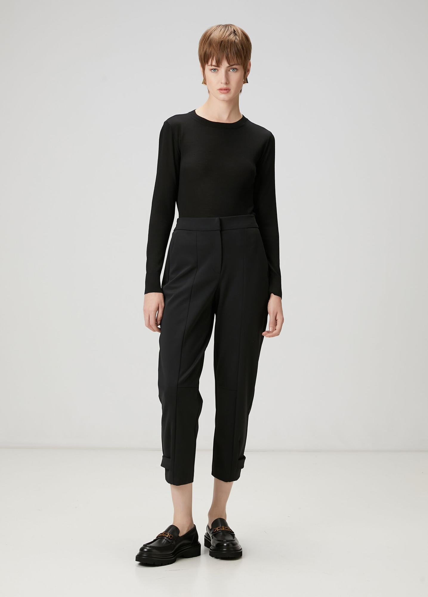 Yüksek bel, yarım lastikli, scuba jogger pantolon. Fermuar kapatmalı, paçası apolet detaylı. Düz renk, 4 adet cepli. Ürün bedeni: 36 / Model ölçüsü: Boy: 176 cm - Göğüs: 86 cm - Bel: 60 cm - Kalça: 90 cm. Yeni sezon hazır giyim alışverişlerinizde ücretsiz tadilatyapılmaktadır