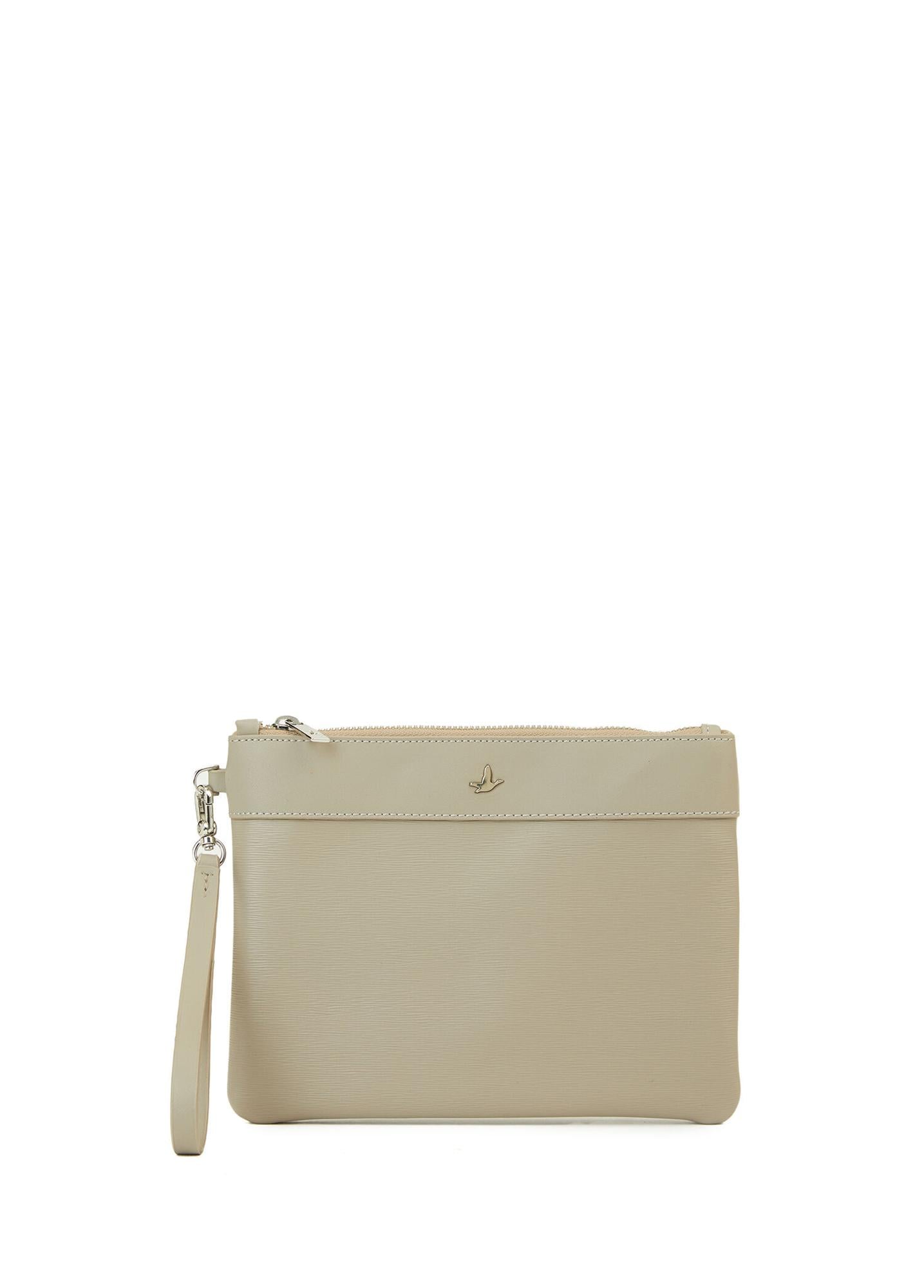 El askılı, fermuar kapatmalı, logolu el portföyü. 24x18 cm