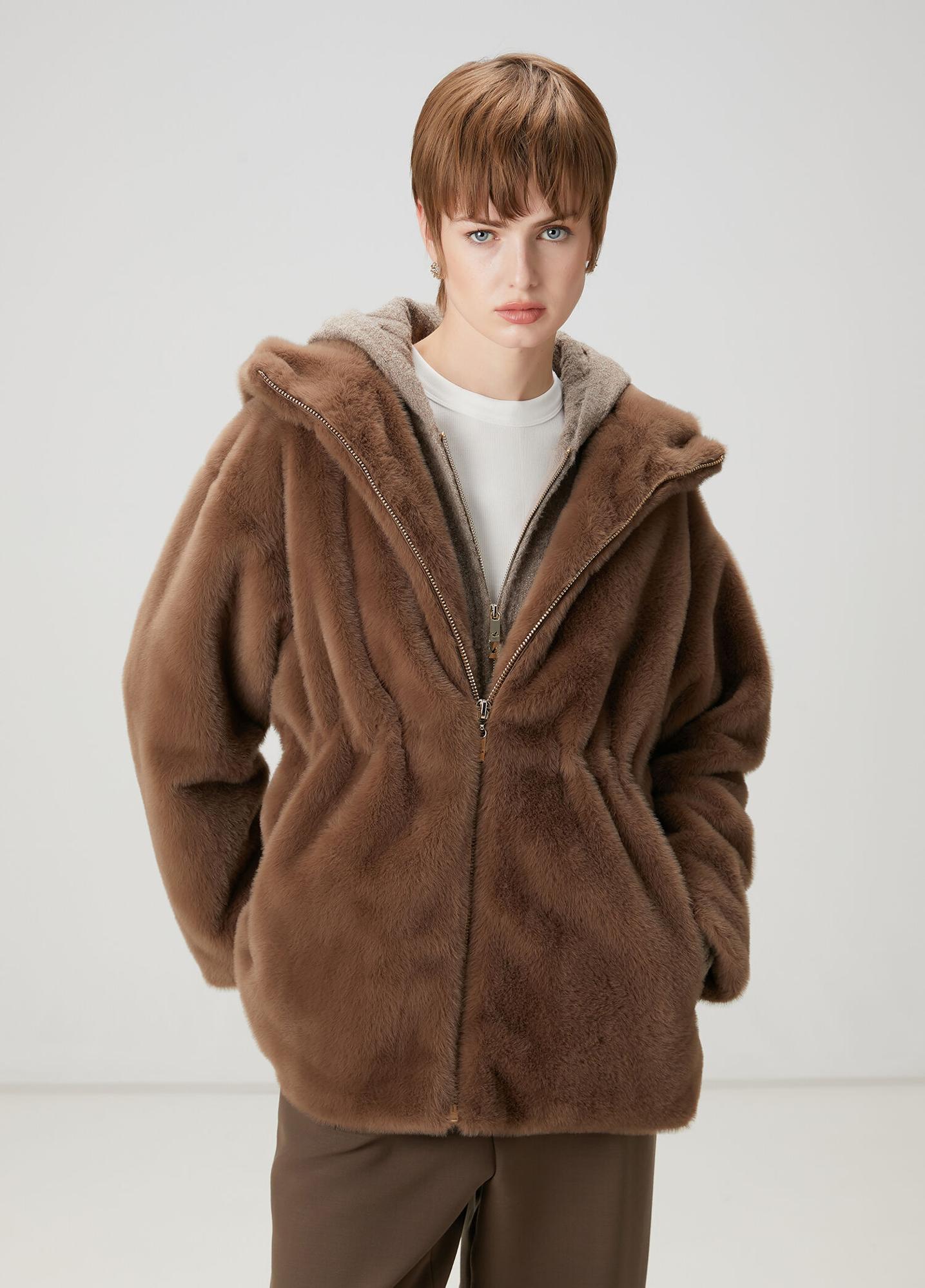 Kapüşonlu, fermuar kapatmalı, beli büzgülü mont. 2 adet cepli. Ürün bedeni: S / Model ölçüsü: Boy: 178 cm - Göğüs: 82 cm - Bel: 62 cm - Kalça: 89 cm.