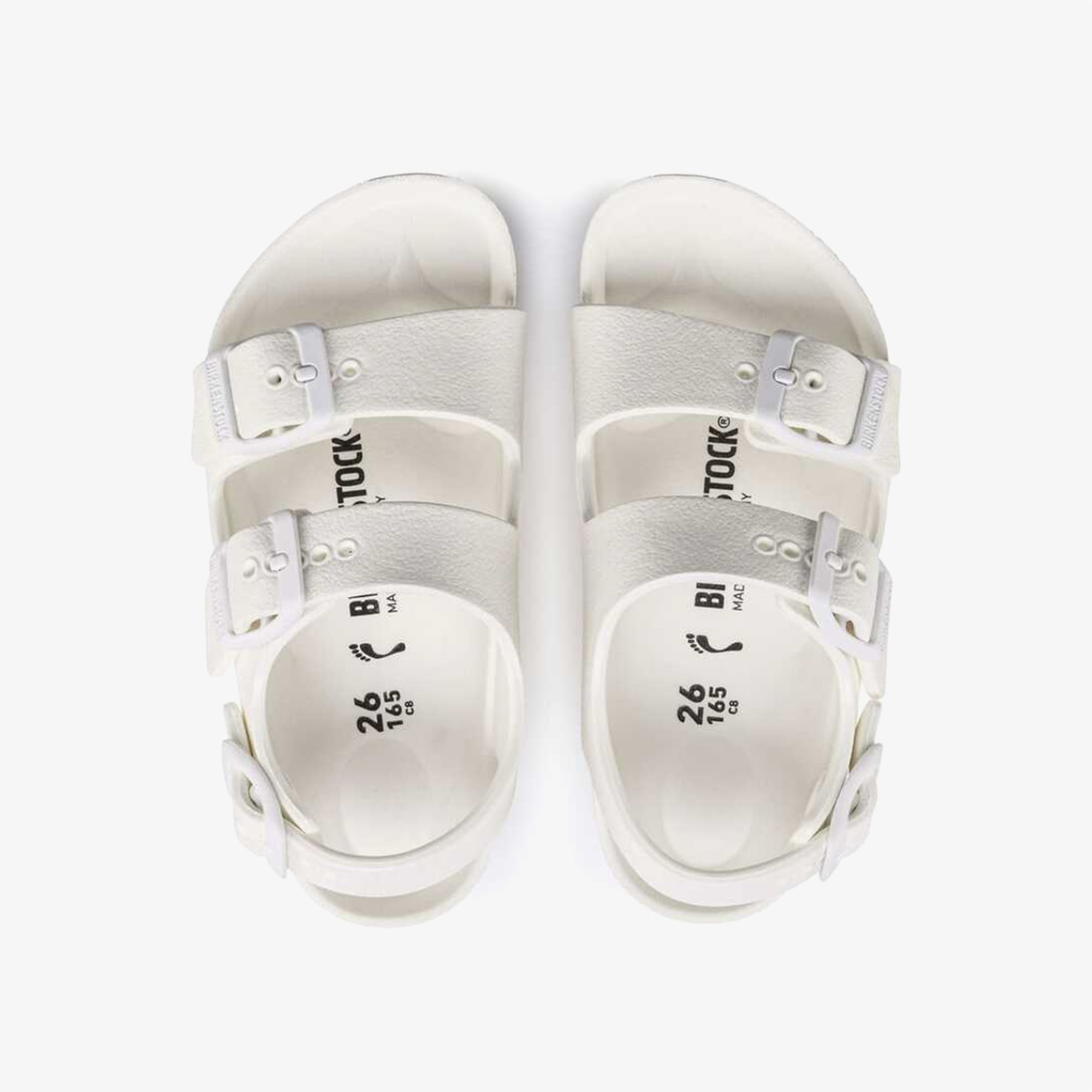 Birkenstock Milano EVA çocuk beyaz sandalet, konforlu ve dayanıklı yapısıyla mükemmel bir yaz tercihi. Beyaz rengi ve rahat EVA tabanı ile gün boyu rahatlık sağlar.