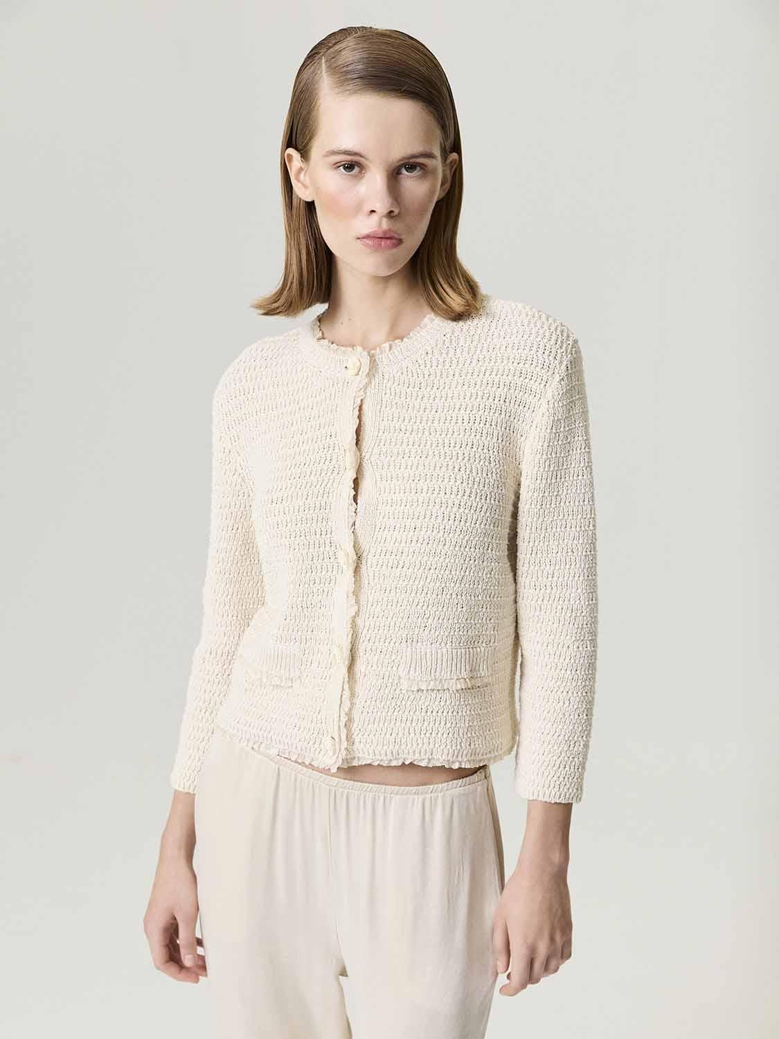 Slim fit ve tam kalıp tasarımıyla konforu zarafetle buluşturan bu triko, minimal çizgileri modern bir yorumla sunuyor. Astarsız örme dokusu gün boyu hafif ve rahat bir kullanım sağlarken, sıfır yakası temiz ve sofistike bir görünüm yaratıyor. Uzun kolları ve aksesuar düğme kapaması, tasarıma ince ama karakterli bir dokunuş katıyor. Biye detayları ise trikonun bütünlüğünü vurgulayarak sade şıklığı ön plana çıkarıyor. Hem günlük kombinlerde hem de ofis stilinde kusursuz bir tamamlayıcı parça. Kalıp: Slim Fit Model Ürün Bedeni: S Model Bedeni: Boy 1.77 / Göğüs 84 cm / Bel 57 cm / Kalça 87 cm