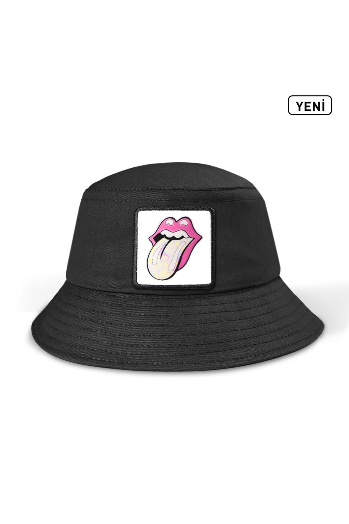 BlackBörk, Dudak Logolu Siyah Bucket Şapka, Unisex