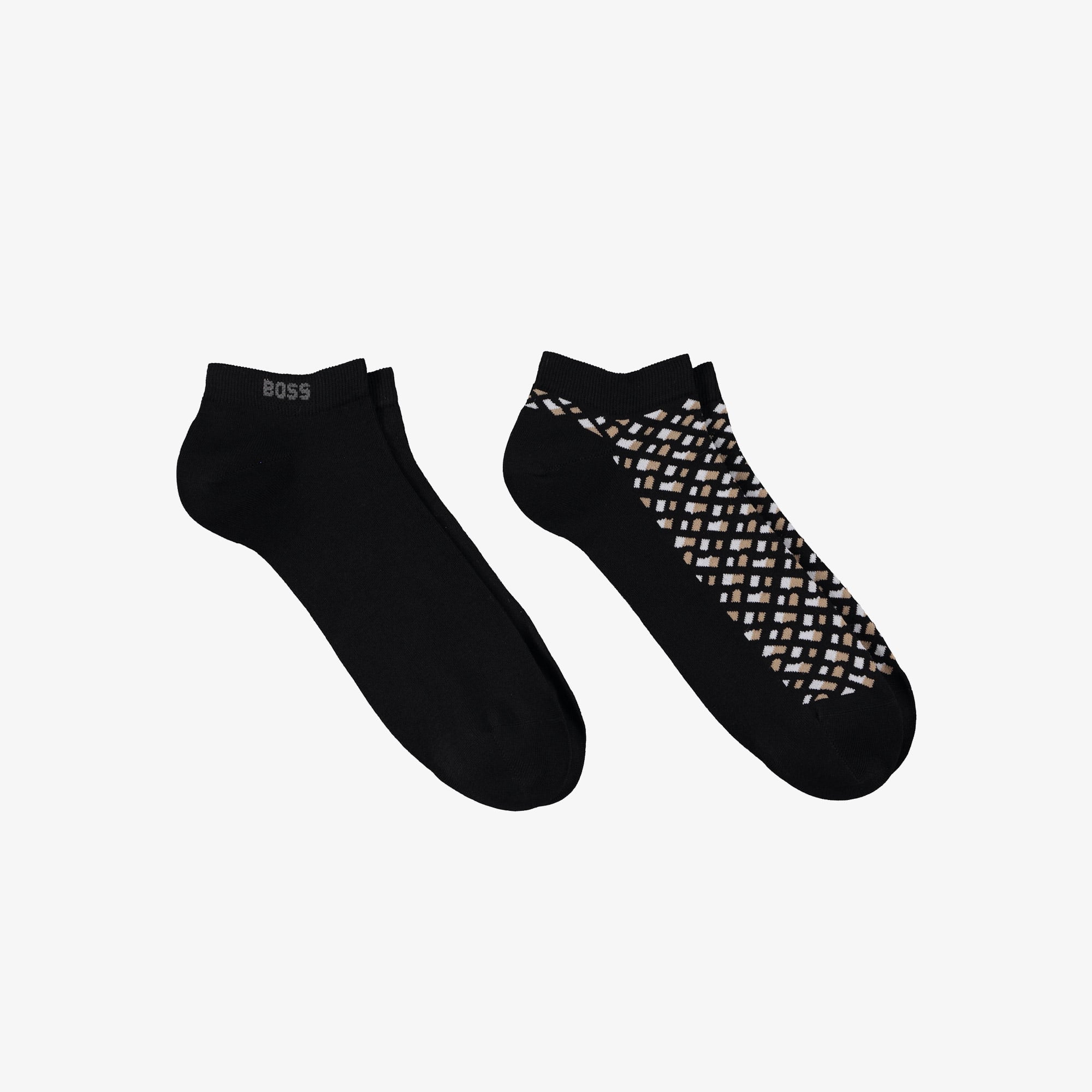 Boss markalı erkek çorapları, şıklığını ve konforunu bir arada sunar. Siyah zemin üzerine modern desenleri ile dikkat çeken bu çoraplar, günlük kullanımın yanı sıra özel günlerde de tarzını tamamlaman için idealdir.