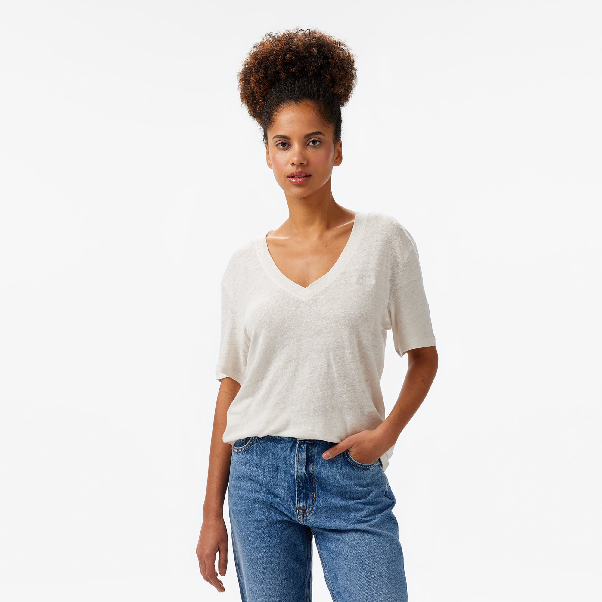 Boss Kadın T-Shirt, şıklığı ve rahatlığı bir araya getirerek günlük stiline zarif bir dokunuş katıyor. Hafif ve yumuşak kumaşı sayesinde gün boyu konforu seninle buluşturuyor. Modern V yaka tasarımı ve salaş kesimiyle hem sportif hem de şık bir görünüm elde etmeni sağlıyor.