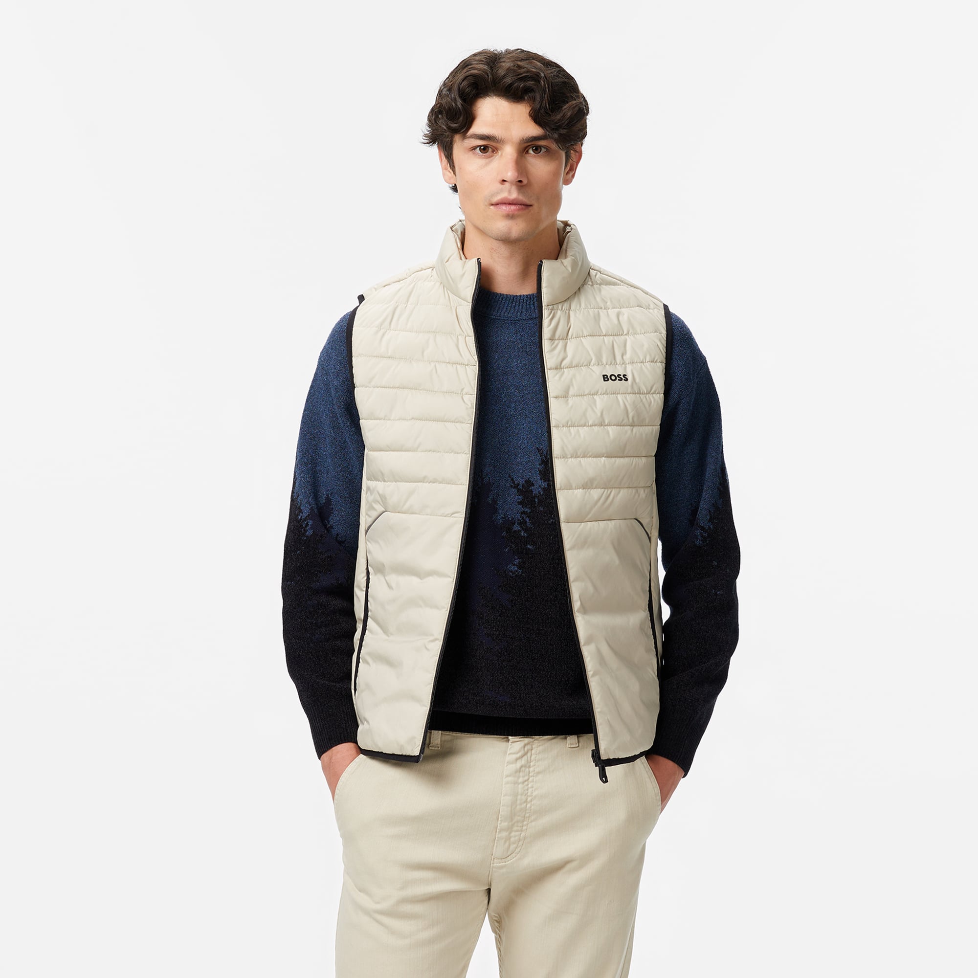 Boss Erkek Bej Yelek, zarif bej rengiyle her türlü kombinine kolayca uyum sağlar.