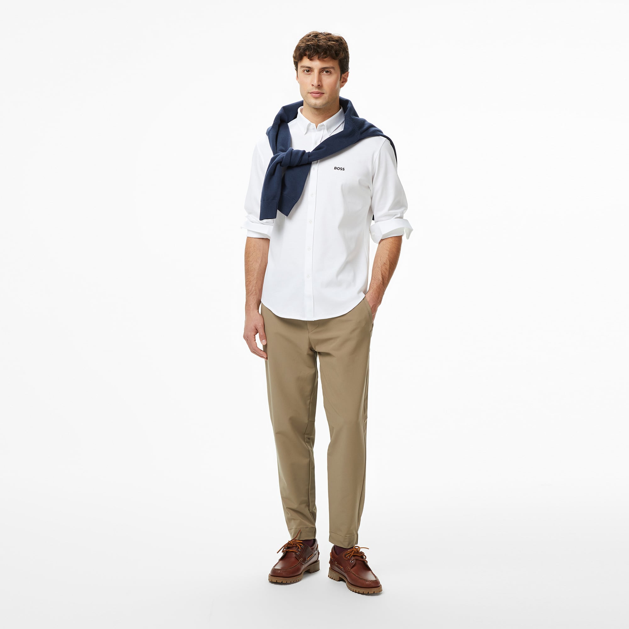 Boss Flex Erkek Bej Pantolon, esnek kumaşı sayesinde gün boyu hareket özgürlüğü sunar.
