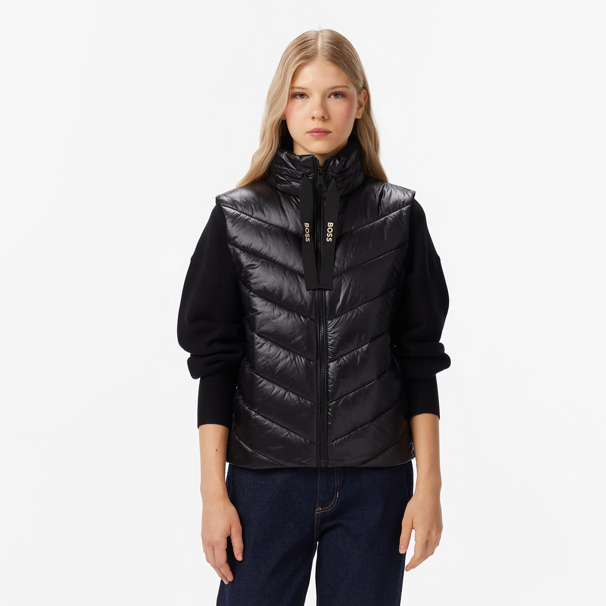 Boss Kadın Siyah Yelek ile stilini zarif bir dokunuşla tamamla. Bu yelek, modern kadının dinamik yaşam tarzına uyum sağlarken, şıklığından ödün vermek istemeyenler için ideal bir seçim. İnce detayları ve kesimiyle, her kombini bir üst seviyeye taşıyacak.