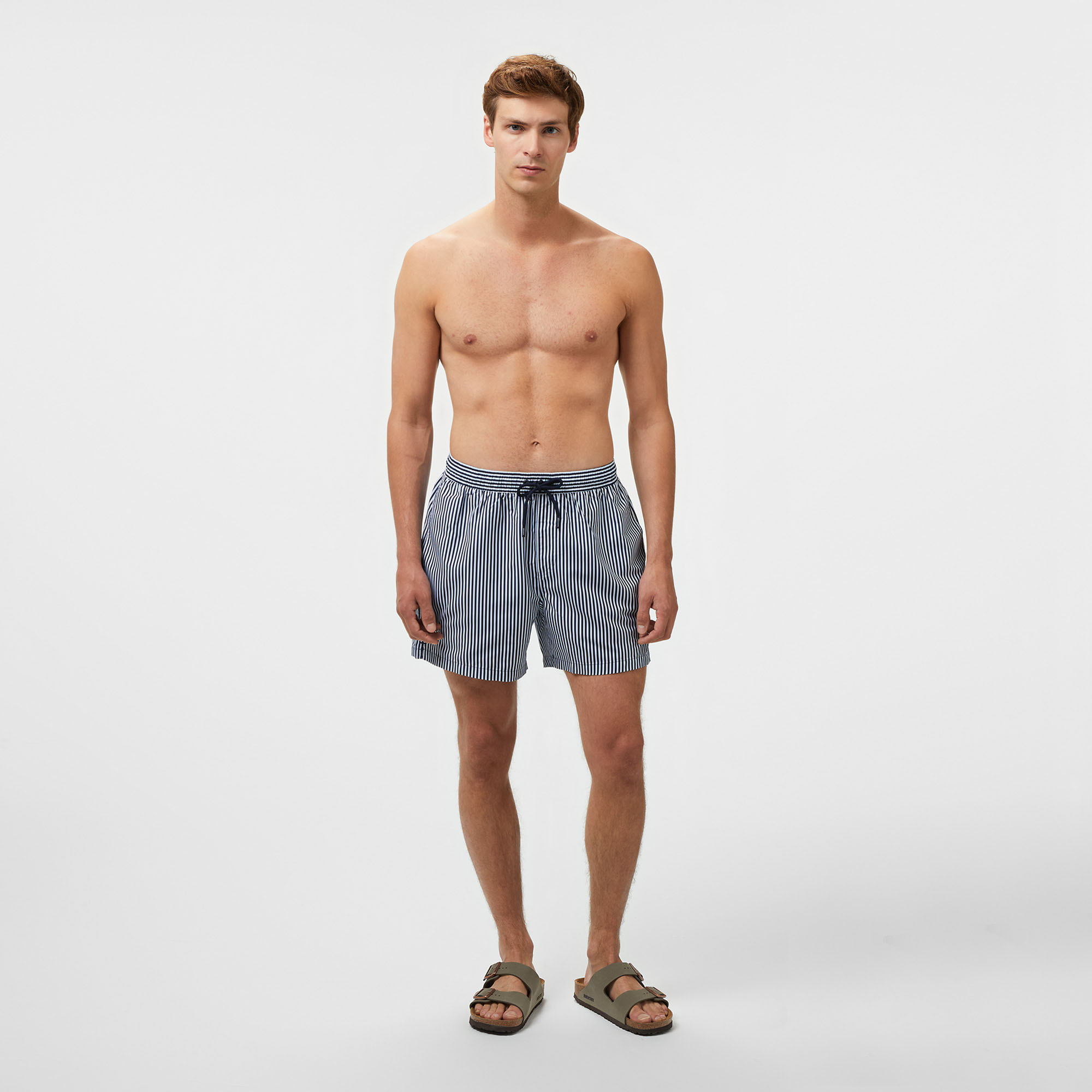 Brooks Brothers Lastikli İnce Çizgili Deniz Erkek Lacivert Mayo Şort