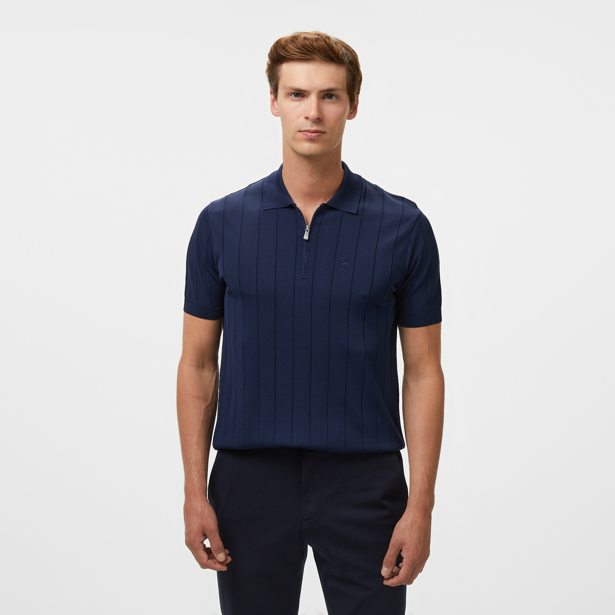Brooks Brothers Polo Yaka Nervürlü Rayon Kısa Kol Erkek Lacivert Kazak