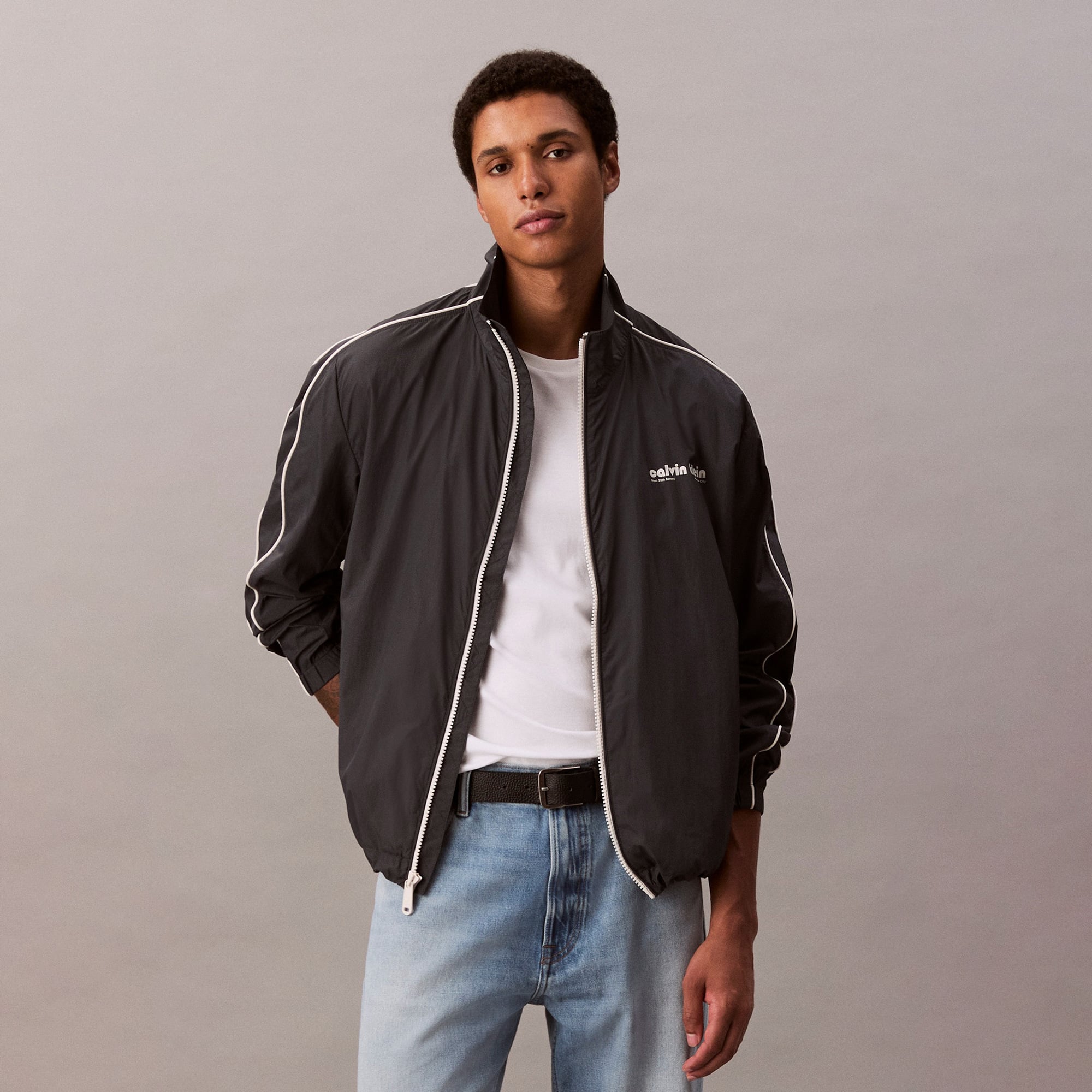 Calvin Klein Crinkle Stand Collar Track Erkek Mavi Ceket
