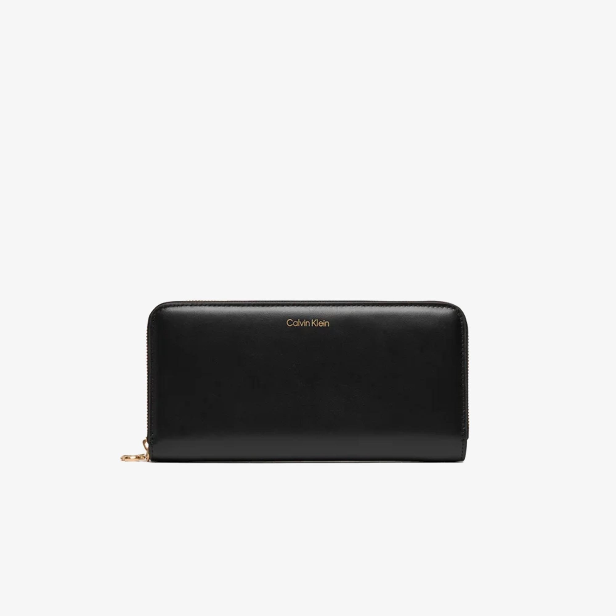Calvin Klein Large Zip Around Kadın Siyah Cüzdan, şık ve modern tasarımıyla dikkat çeker.
