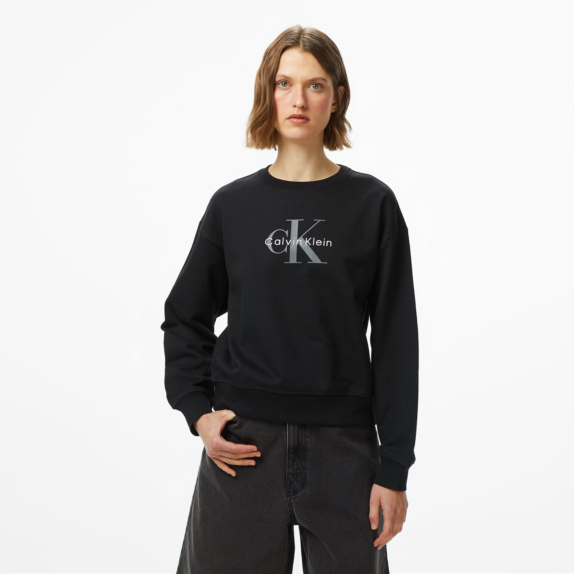 Calvin Klein Monologo French Terry Kadın Siyah Sweatshirt Özellikleri