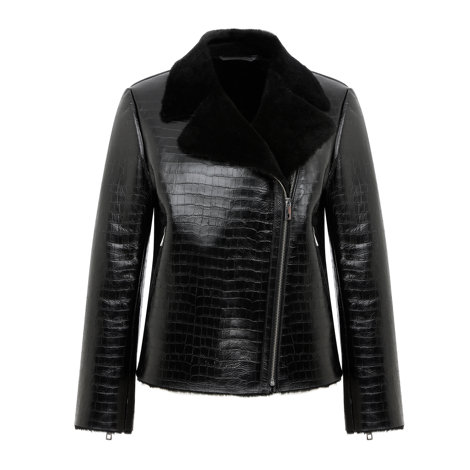 Chailyn Siyah Kadın Kroko Baskılı Kürk Deri Mont