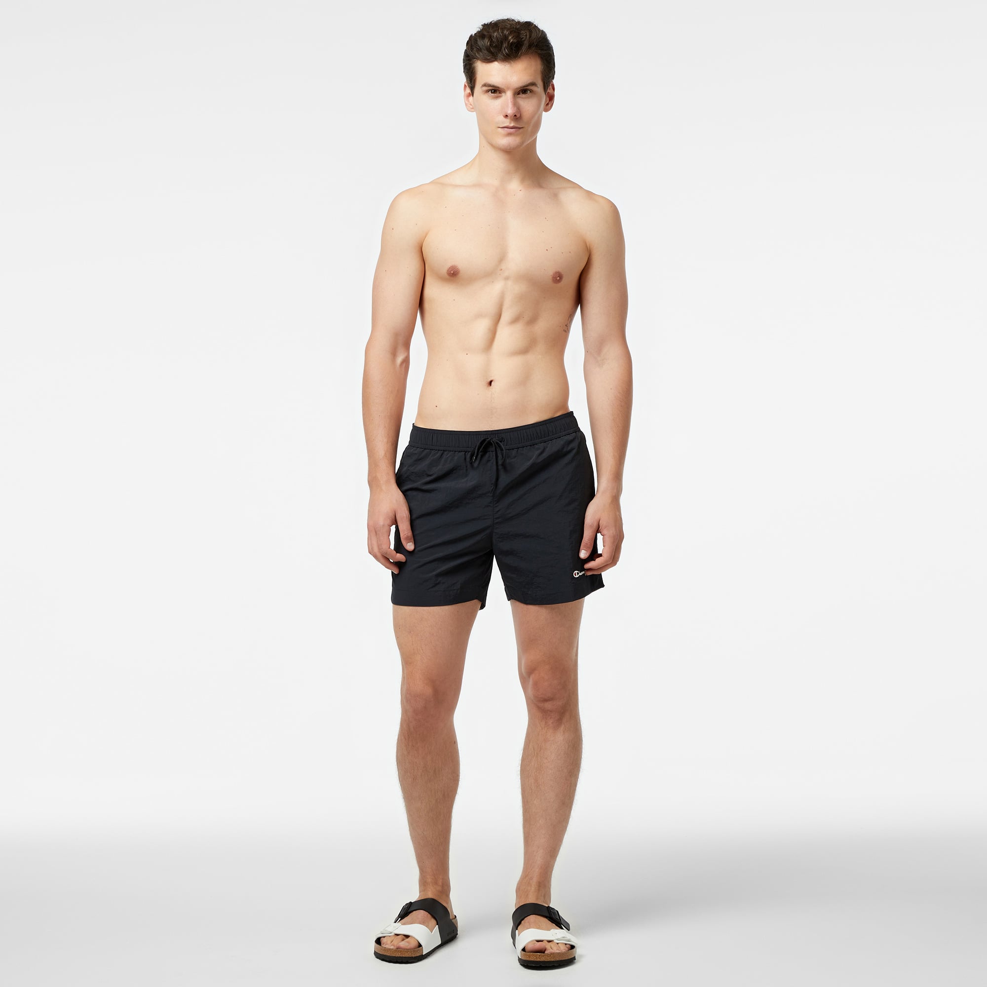 Champion Classic erkek siyah deniz şortu, plajda ve havuzda şıklığı ve konforu bir arada sunar. Hafif ve hızlı kuruyan kumaşı sayesinde, denizden çıktıktan sonra rahatlıkla hareket edebilirsin. Şık siyah rengi ve modern kesimi ile dikkat çeken bu şort, yaz aylarının vazgeçilmezi olacak.