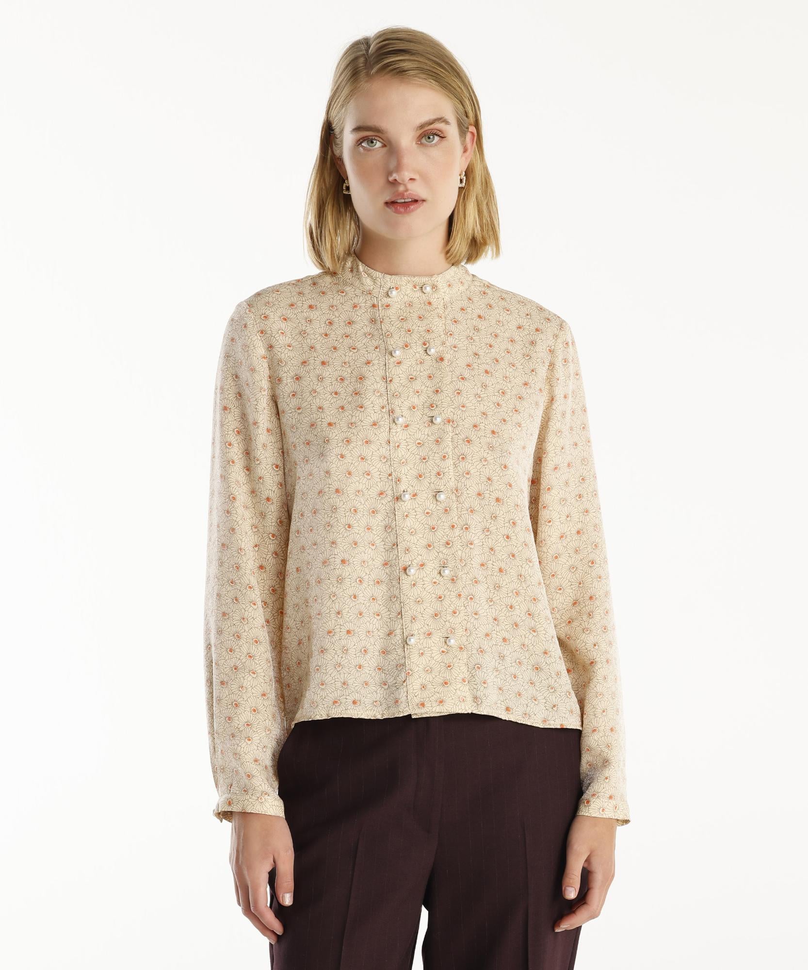 Bu bluz, ön kısmındaki düğme detayları ve yüksek yakası ile şık bir görünüm sunuyor. Hem iş hem de günlük kombinlerinizde rahatlıkla kullanabileceğiniz bu model, stilinizi tamamlayacak ve her ortama uyum sağlayacak.