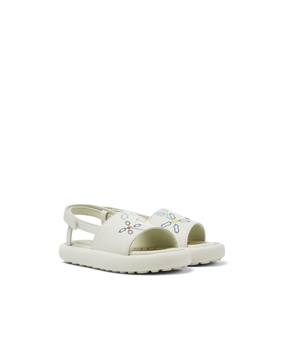 White leather kids' sandal with hook & loop system, EVA footbed, and EVA outsoles.