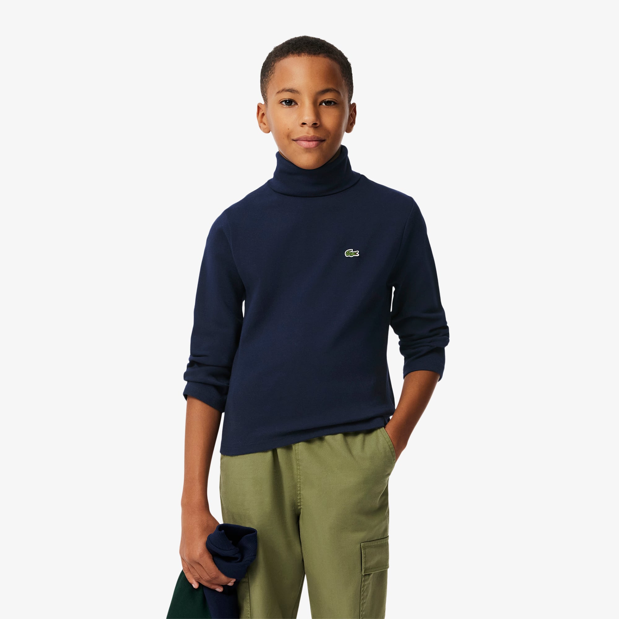 Boğazlı yaka detayı ve uzun kollu tasarımıyla öne çıkan çocuk t-shirt'ü, sade ve şık duruşunu Lacoste'un ikonik timsah logosuyla tamamlar. Yumuşak dokusu ve esnek kumaşı sayesinde çocukların gün boyu rahat etmesine yardımcı olur.