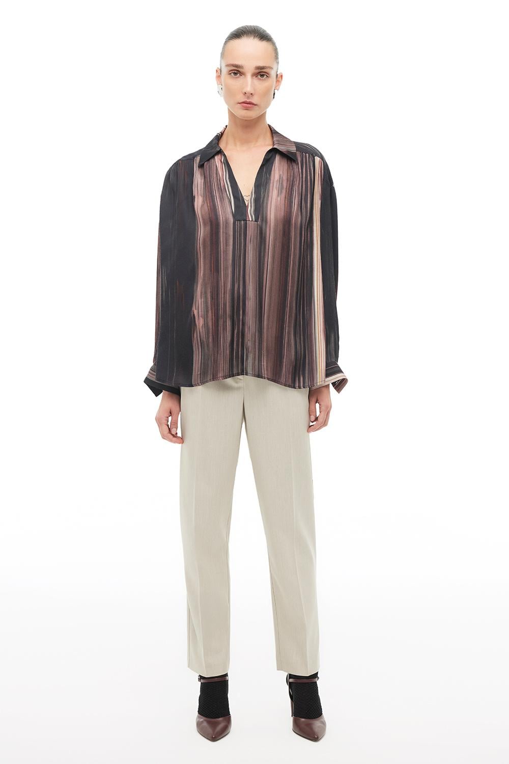 Ürün Detayları : Çok Renkli Gömlek Yaka Çizgili Bluz Kalıp : Rahat Kalıp Kol : Düşük Kollu Yaka : Gömlek Yaka Kol : Uzun Kol Model Boyu : Standart Boy Dokuma-Örme : DOKUMA Cinsiyet : Kadın Üretim Yeri : Türkiye Desen : Çizgili Karışım : %57 Rayon %52 Floş %48 Viskoz Sezon : 2025 - 2026 SONBAHAR KIS