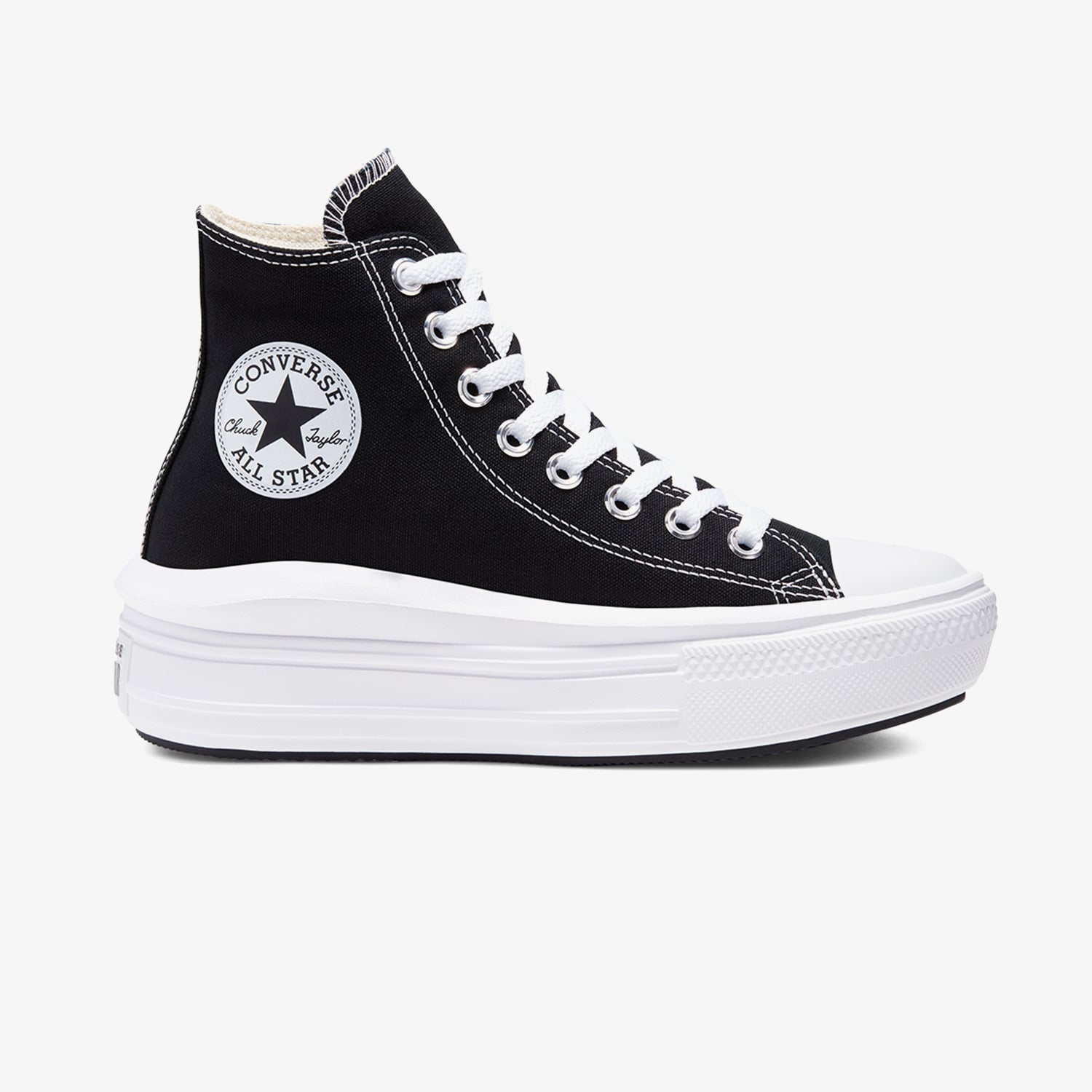 Chuck Taylor Move'da, klasik silüet olan kumaş yüzey, elmas desenli dış taban ve ikonik bilek etiketi geliştirilip ultra hafif bir EVA çanak tabana ekleniyor.Bu yeni yüksek taban Converse ekstra konfor ve yükseklik sağlıyor.