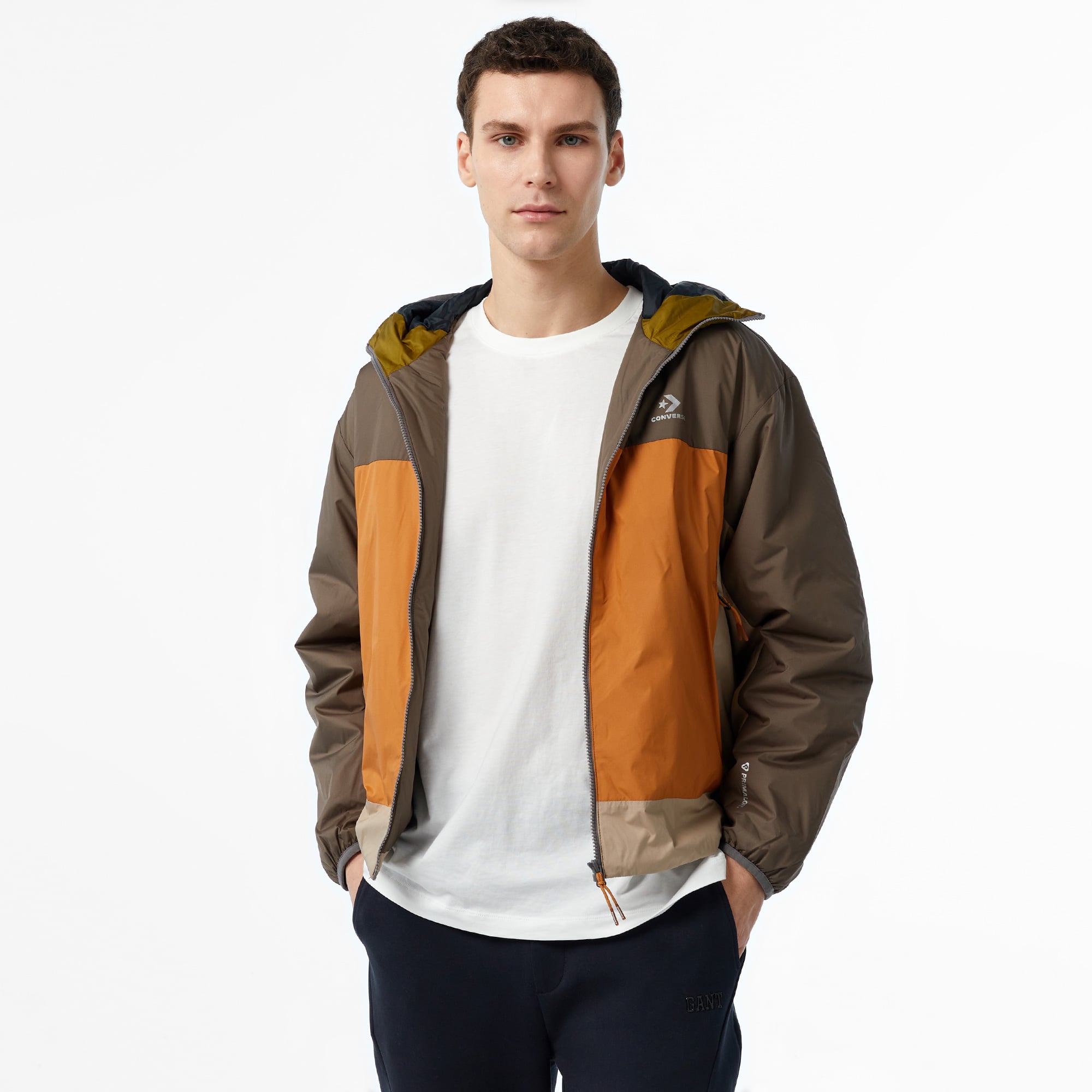 Converse Erkek Kapüşonlu Renk Bloklu Kahverengi Mont
