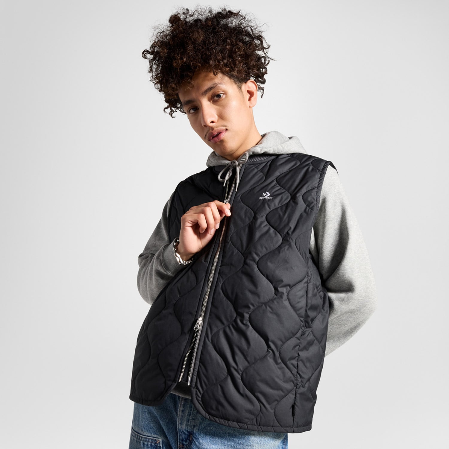 Göğüste işlemeli Converse logosu