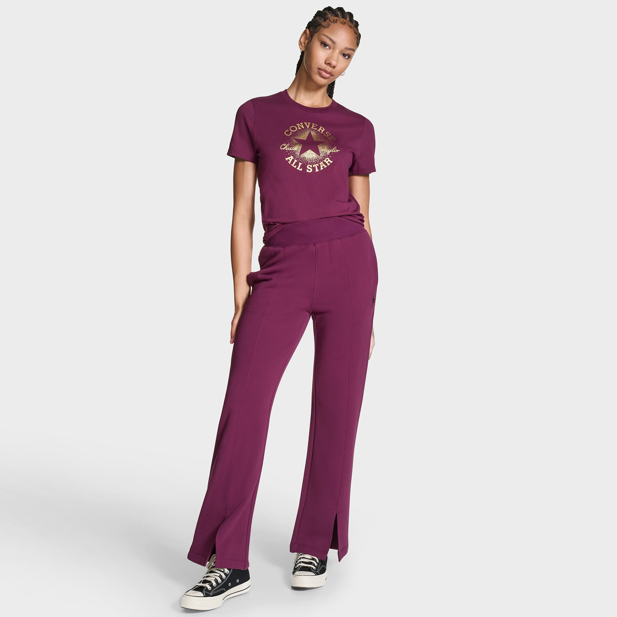 Modern ve bol paça kesimiyle hareket özgürlüğü sunan Converse eşofman altları hem evde hem de dışarıda şık görünmeni sağlar.
