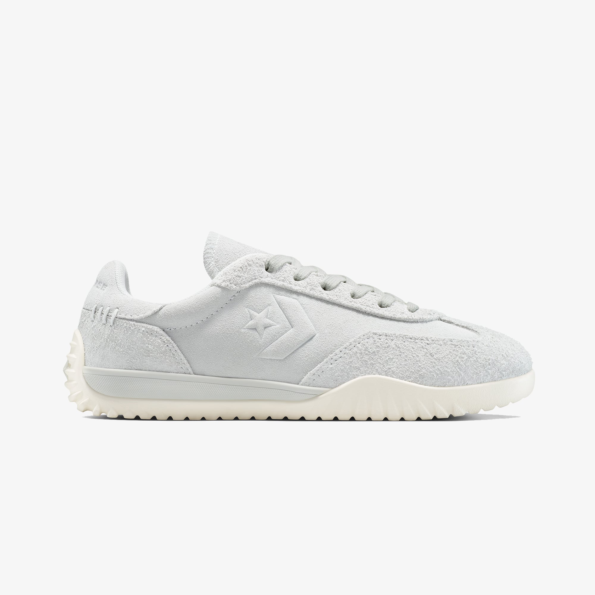 Converse Run Star Trainer Colourful Suede'in çok yönlü gri rengi, süet dokusuyla her kombine kolayca uyum sağlar.