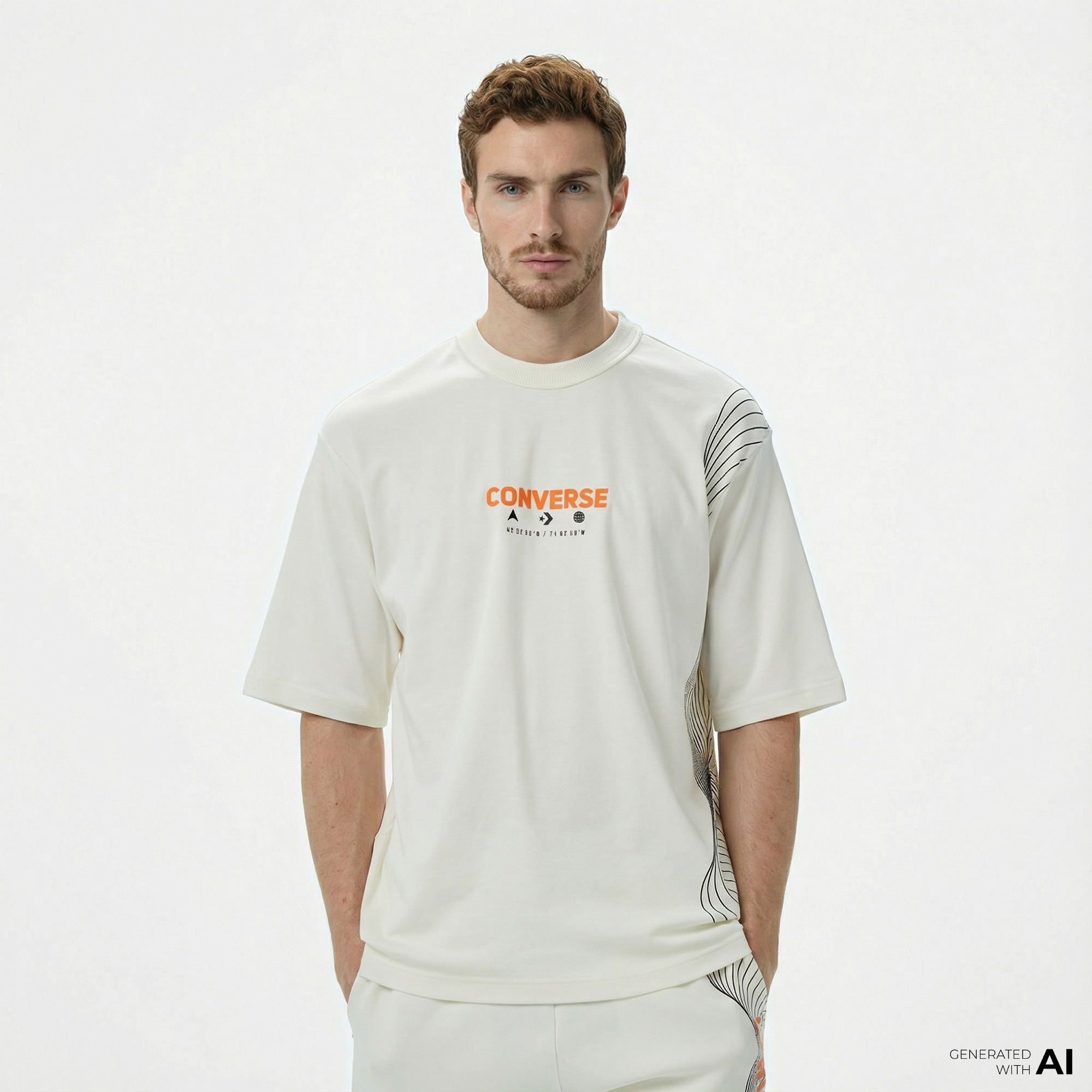 Converse Star Chevron Baskılı Erkek Oversize Fit Krem T-Shirt, geniş ve rahat kesimiyle gün boyu özgür hissetmeni sağlar.
