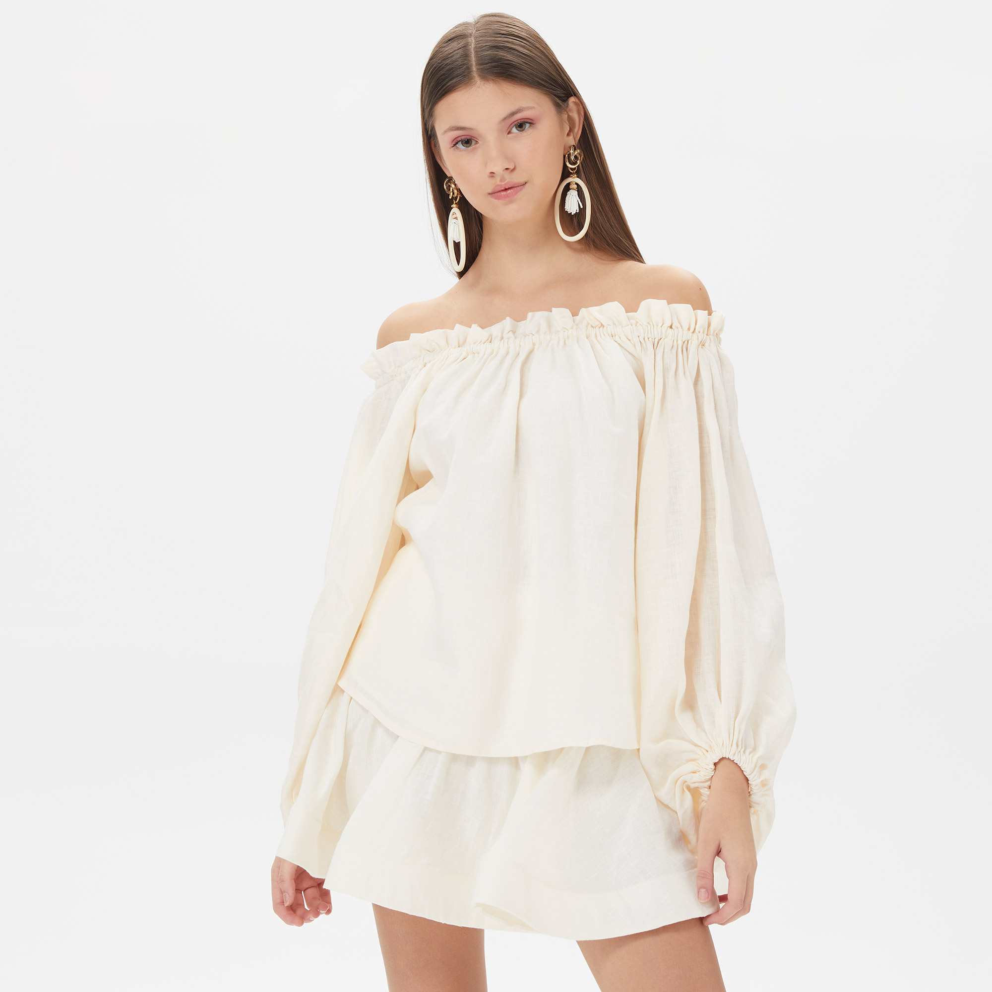 Lauren mini elbise, etek hareketleriyle feminen bir görüntü yakalamanızı sağlar. Omuzları açık yaka, balon kollu ve kemer detayı ile olduğundan daha zayıf görünmenizi sağlayan bir siliüet oluşturur.