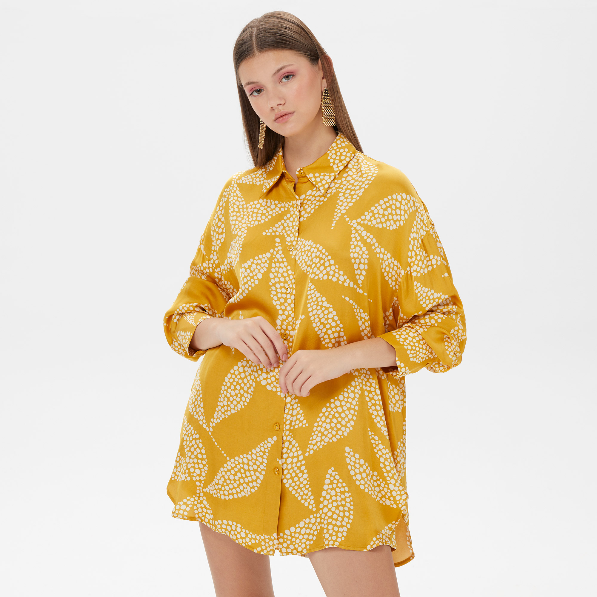 Modelin üzerindeki ürün bedeni: S / Model Ölçüsü: Boy: 173 cm - Bel: 62 cm - Göğüs: 82 cm - Kalça: 92 cm