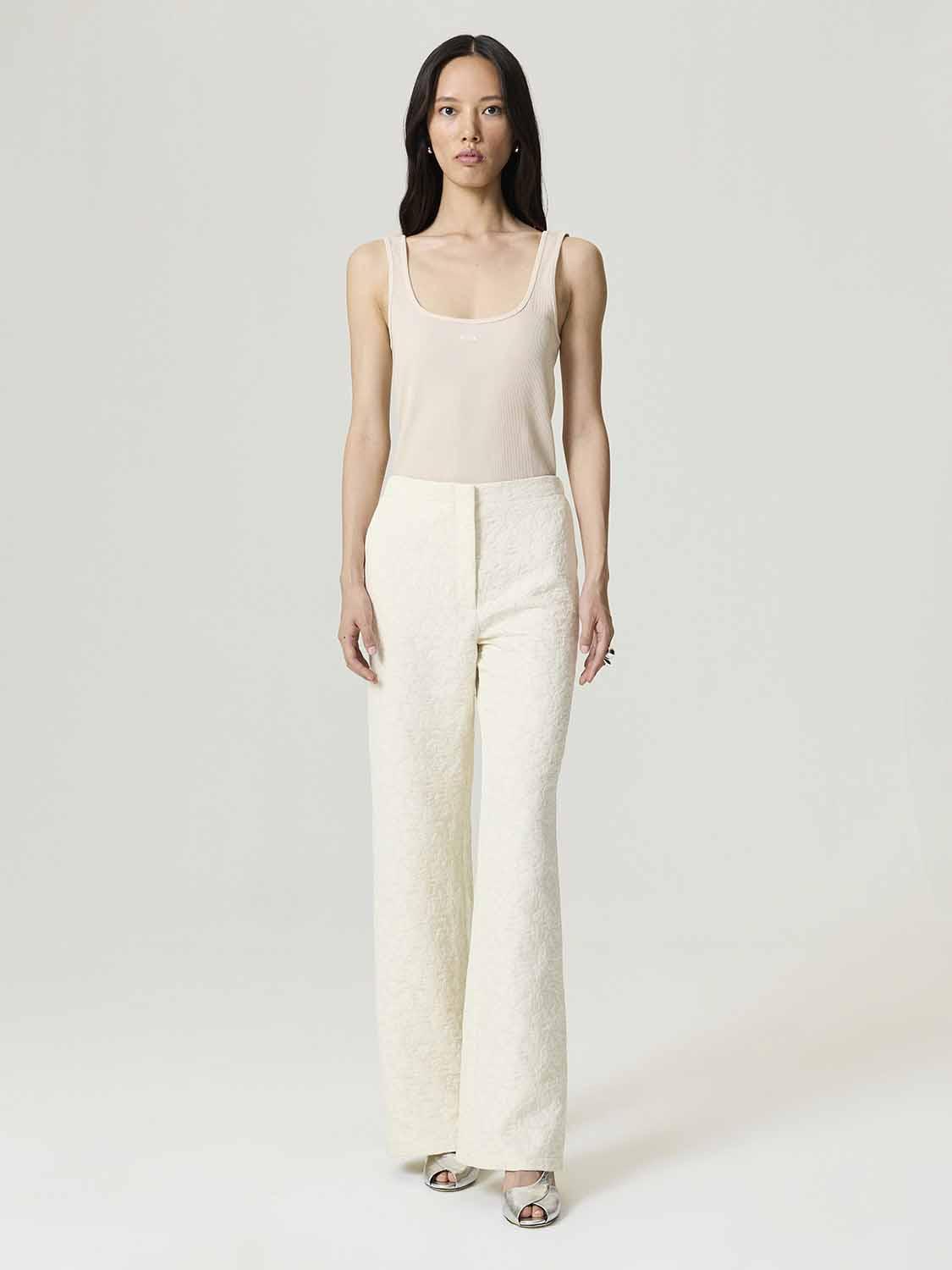 Zarif ve zamansız bir siluet sunan bu pantolon, regular fit formu ve tam kalıbıyla modern bir duruş kazandırıyor. Normal bel tasarımı ve kanca fermuar kapamasıyla klasik çizgileri korurken, boru paça kesimiyle şık bir görünüm sağlıyor. Detay kumaş dokusu, sade tasarıma sofistike bir karakter ekliyor. Astarsız yapısı sayesinde hafif ve akıcı bir duruş sunan bu pantolon, ofis şıklığından akşam davetlerine kadar her ortamda zahmetsiz bir stil yaratıyor. Kalıp: Regular Fit Beden Önerisi: Kendi bedeninizi tercih etmenizi tavsiye ederiz. Model Ürün Bedeni: XS