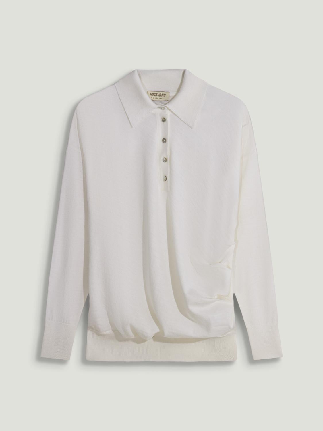 Klasik polo tarzını modern dokunuşlarla yeniden yorumlayan bu drapeli triko, sade şıklığın sofistike bir yansıması. Regular fit kesimi ve tam kalıbı sayesinde konforlu bir duruş sunarken, yumuşak örme dokusu gün boyu rahatlık sağlar. Polo yakası ve düğme kapamasıyla zamansız bir çizgiye sahip olan tasarım, drape detaylarıyla hareket ve incelik kazandırır. Astarsız yapısı hafiflik hissi verirken, uzun kollu formu mevsim geçişleri için ideal bir kullanım sunar. Günlük kombinlerden ofis stiline kadar her ortamda zarif bir şıklık yaratmak için mükemmel bir parça. Kalıp: Regular Fit