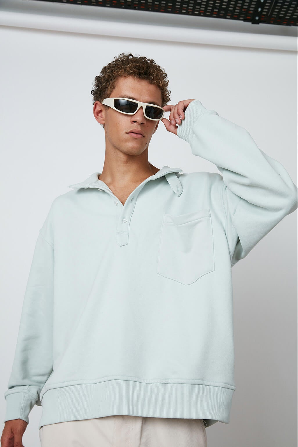 Düğmeli Dik Yaka Sweatshirt
