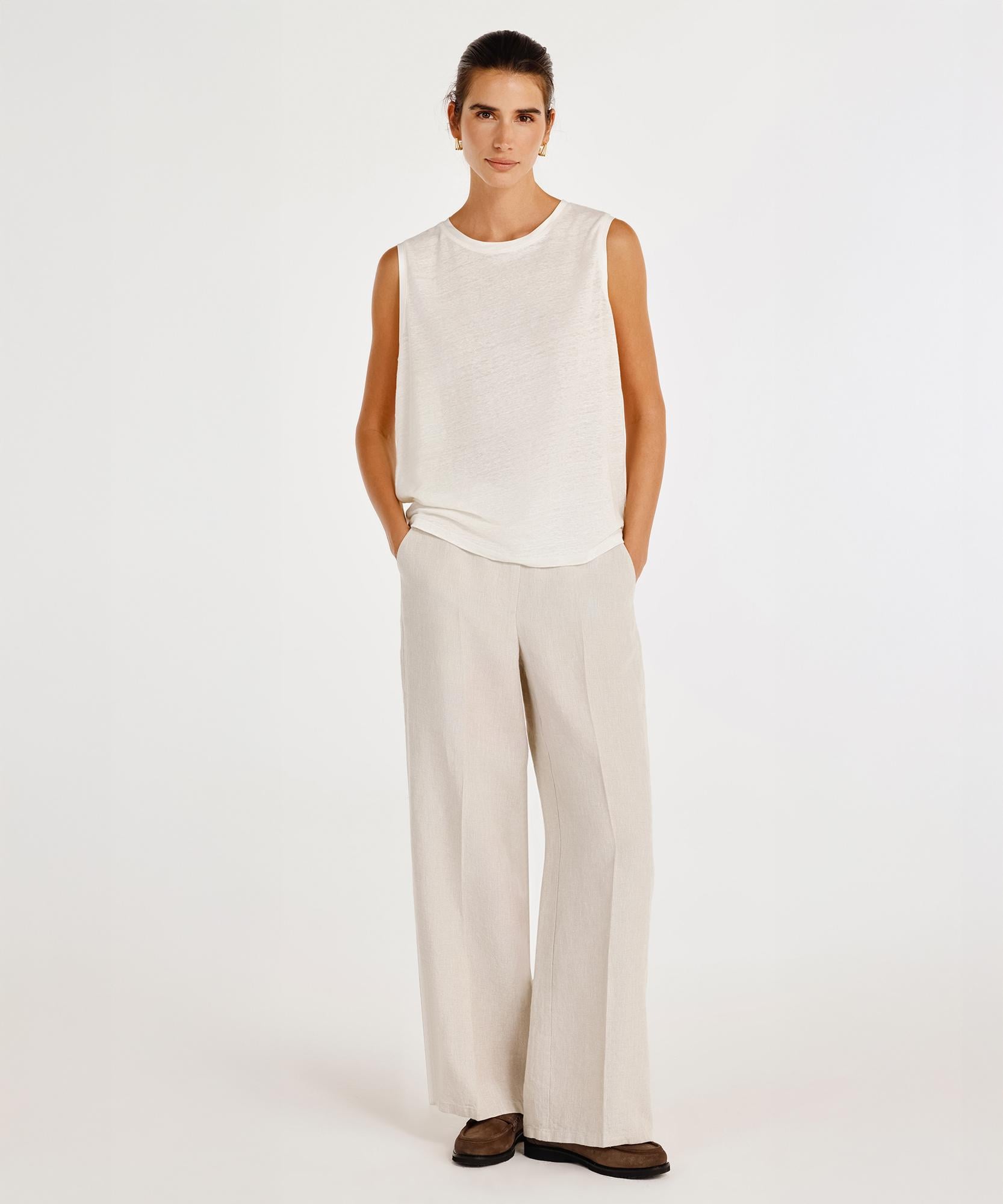 Doğal dokusu ve geniş paça kesimiyle rahat bir kullanım sunan bu pantolon, yaz aylarında serin ve konforlu bir deneyim sağlar. Kemer detaylı beli, vücuda tam otururken, casual ve bohem tarzlarla mükemmel bir uyum yakalar.