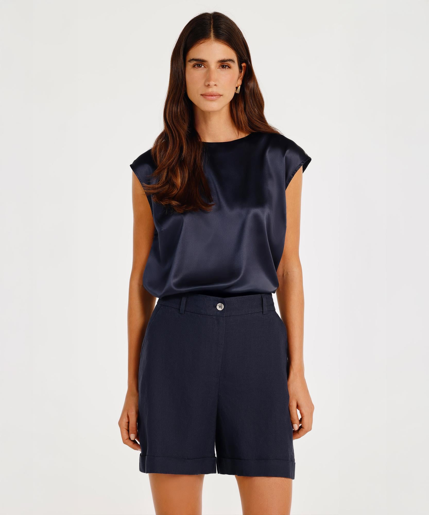 Rahat kesimi ve esnek beliyle konforlu bir stil sunan bu şort, günlük ve tatil kombinlerine uyum sağlar. Crop top ve espadrillerle yaz stilinizi tamamlayabilirsiniz.