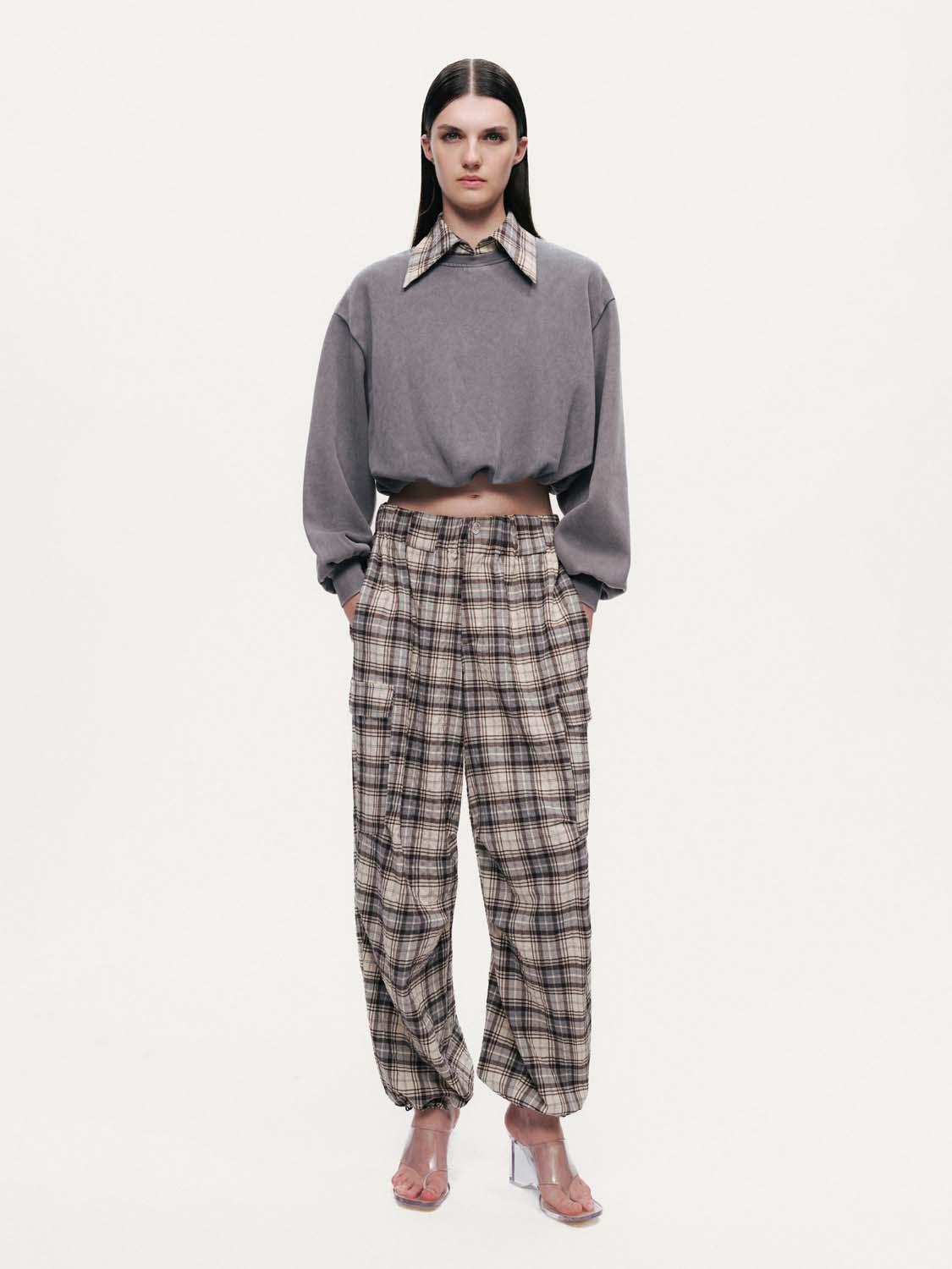 Fonksiyonelliği ve modern tarzı bir araya getiren bu ekoseli kargo pantolon, rahatlığı ve şıklığı aynı anda sunuyor. Relaxed fit kesimi ve tam kalıbı, dökümlü ama dengeli bir siluet yaratırken, elastik belli konforlu bir kullanım sağlar. Dokuma kumaşı ile formunu koruyan tasarım, düğme ve fermuar kapamasıyla pratik bir bitiş sunar. Paçaları ayarlanabilir lastikli detayı ve ekoseli desenleri, pantolona sportif bir dinamizm kazandırırken, gündelik şehir kombinlerinden hafta sonu rahatlık stillerine kadar her ortamda modern bir duruş sağlar. Kalıp: Relaxed Fit Model Ürün Bedeni: S Model Bedeni: Boy 1.79 / Göğüs 83 cm / Bel 64 cm / Kalça 90 cm