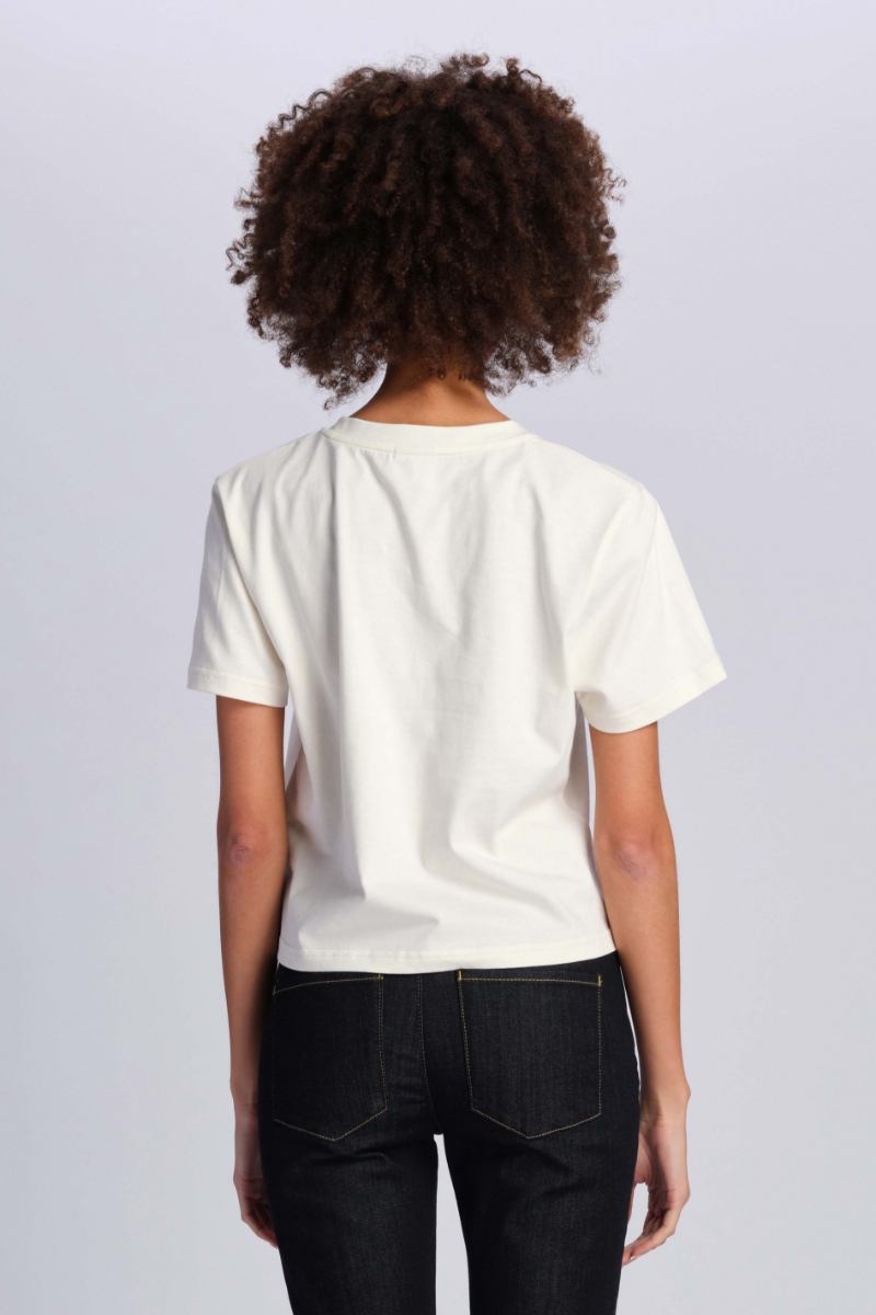 Bisiklet yaka, kısa kollu baskı detaylı T-shirt.Bu ürünü 30 derecede, benzer renklerle, tersten yıkayınız ve gölgede kurutunuz. Baskı veya nakış olan bölgeye ütü temas ettirmeyiniz, bu bölge tersten ütülenebilir.