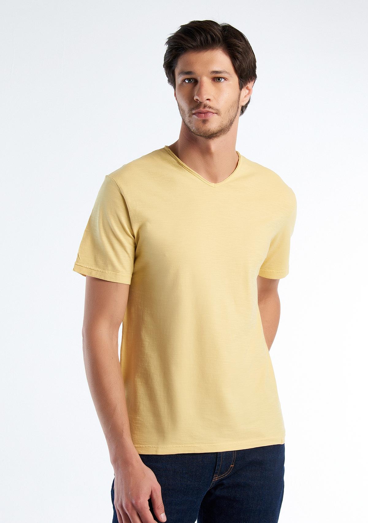 Erkek Açık Sarı V Yaka Slub T-shirt