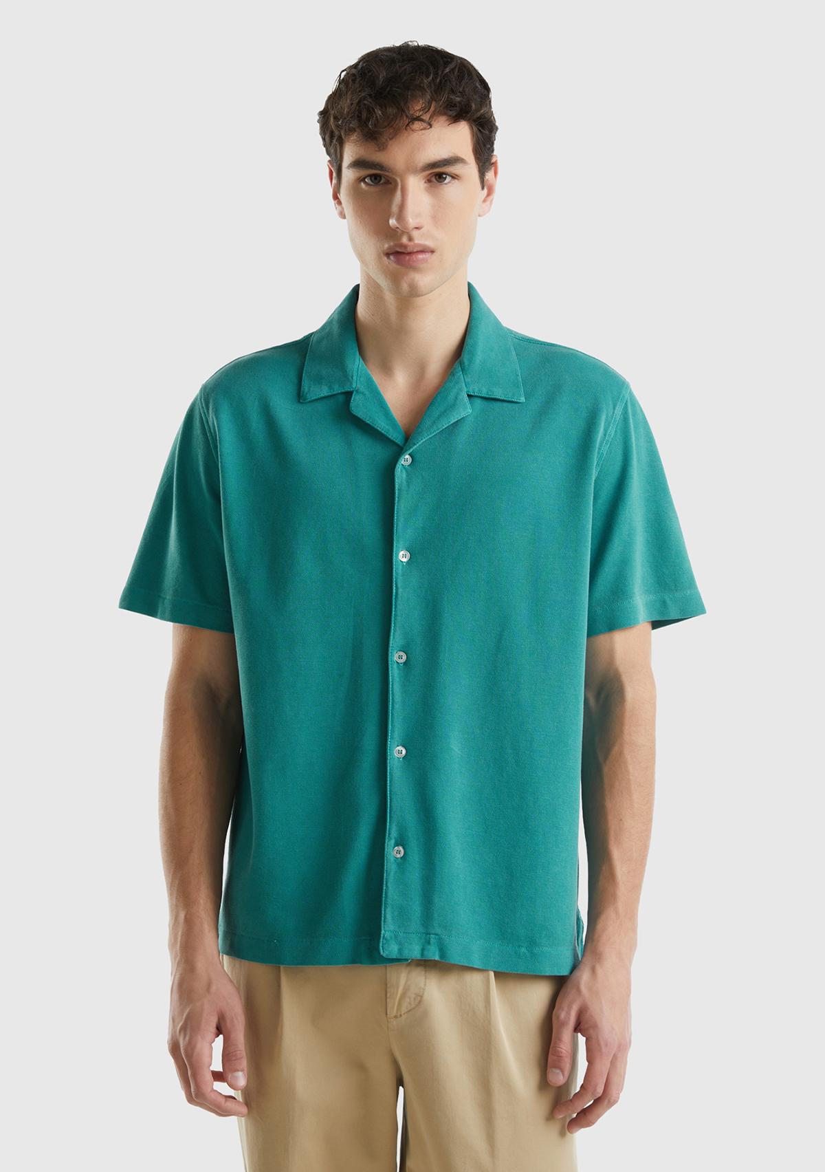 Erkek Adaçayı %100 Pamuk Tek Renkli Dekoratif Dikişli Kısa Kollu Gömlek