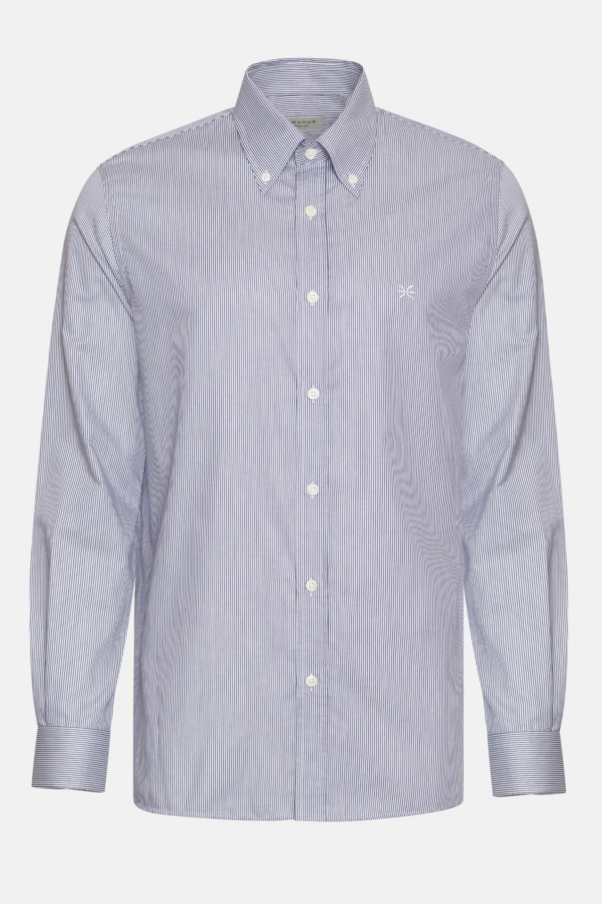 Erkek Antrasit Cooper Fit Düğmeli Yaka Çizgili Spor Gömlek
