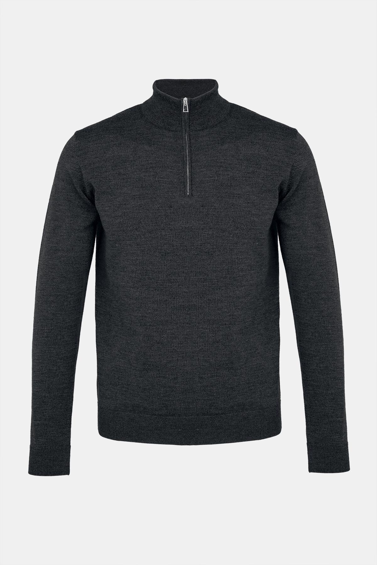 Erkek Antrasit Extrafine Yün Yarım Fermuarlı Kazak