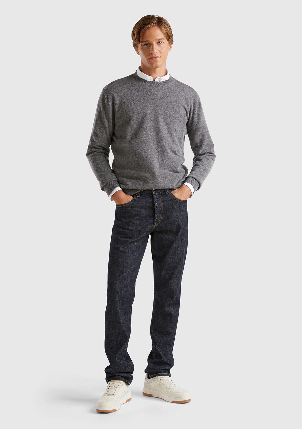 Erkek Antrasit Melanj %100 Kaşmir Normal Kesim Ribanalı Yuvarlak Yaka Kazak. Keçi Yünü İçerir