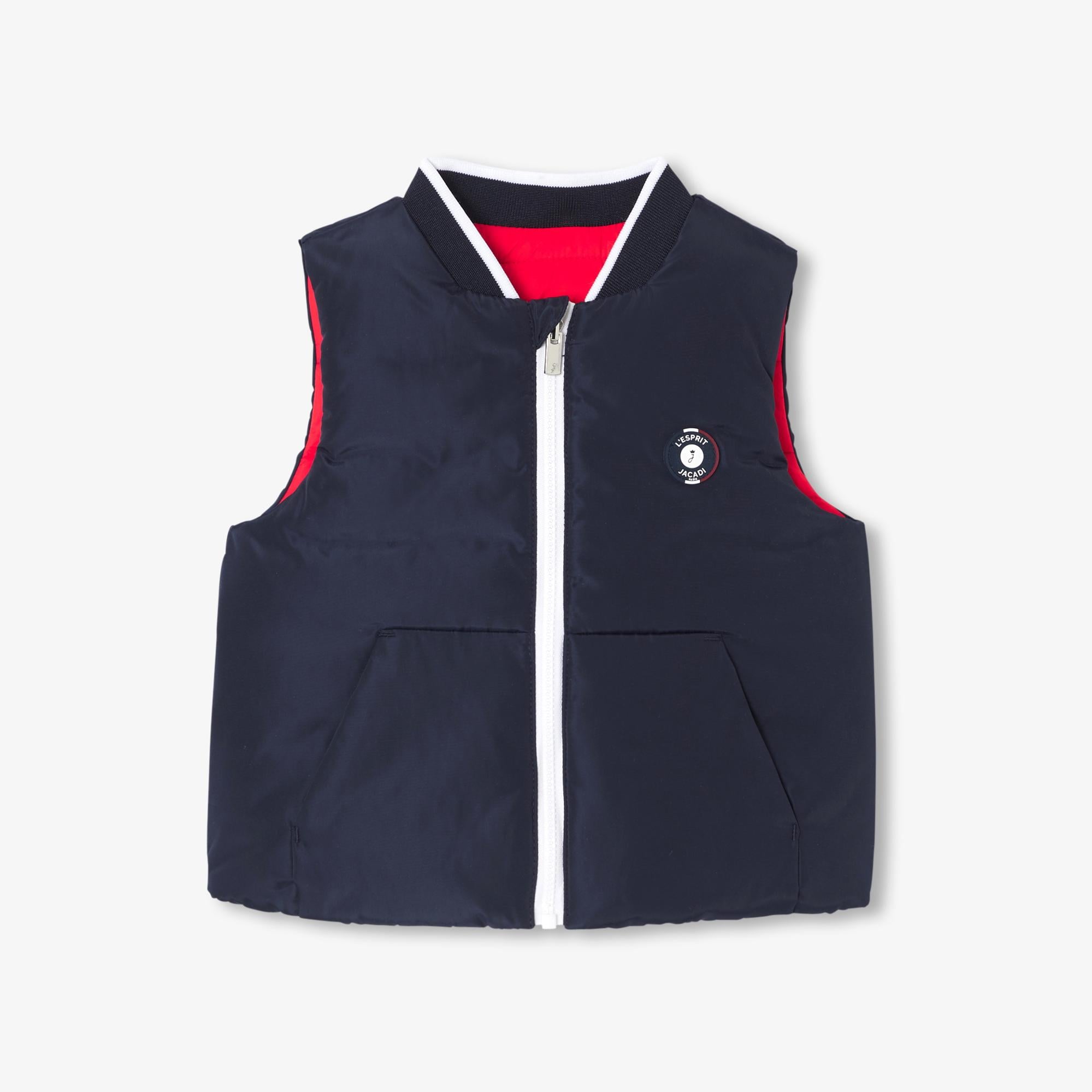 Jacadi tasarımcıları bu kolsuz bebek dolgulu yelek gibi pratik, iyi düşünülmüş parçaları imzalama sanatına sahipler. Su itici naylondan yapılmış, Varsity tarzı yakalı, pürüzsüz lacivert tarafı veya kırmızı dolgulu tarafı bir sweatshirt veya kazak üzerine giyilerek görünümünüzü çoğaltmak için, bu şık, kentsel çift taraflı modeli seviyoruz. - %100 Polyester - Kolsuz çift taraflı dolgulu ceket - Su itici naylon - Varsity tarzı yaka - Pürüzsüz taraf ve dolgulu taraf - Göğüste rozet - Kaplamalı cepler - Fermuarlı - Eğer iki beden arasında kalıyor ve karar veremiyor iseniz, her zaman bir büyük bedeni sipariş ediniz