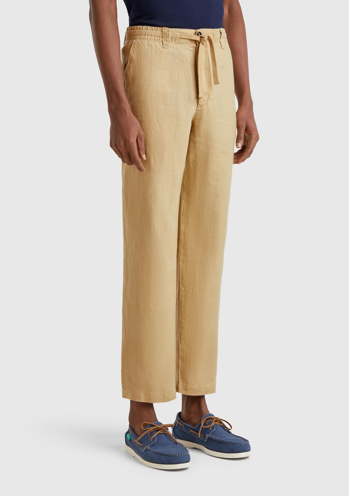 Erkek Bej %100 Keten Beli İpli Pantolon