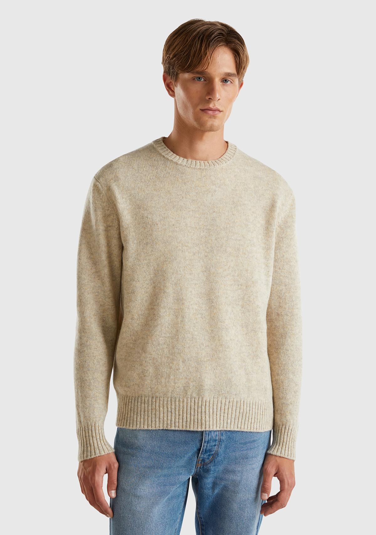 Erkek Bej Bisiklet Yaka Shetland Kazak. Koyun Yünü İçerir